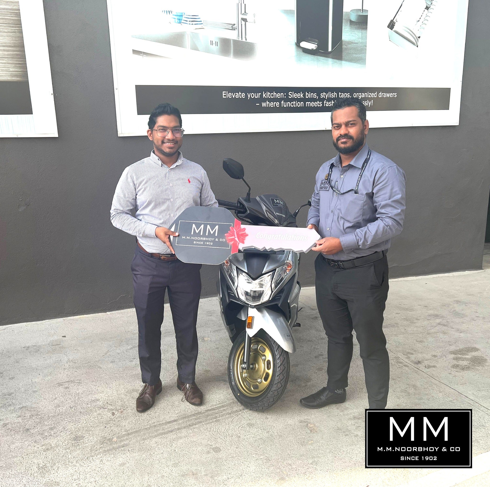 The company has handed over two brand new motorbikes to our dedicated employees as part of our continuous commitment to support and empower our team. The bikes were officially handed over by our HR Manager Mr. Anslem Miranda and Kohuwala Branch Manager Mr. Mohamed Arshad.