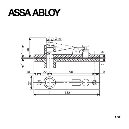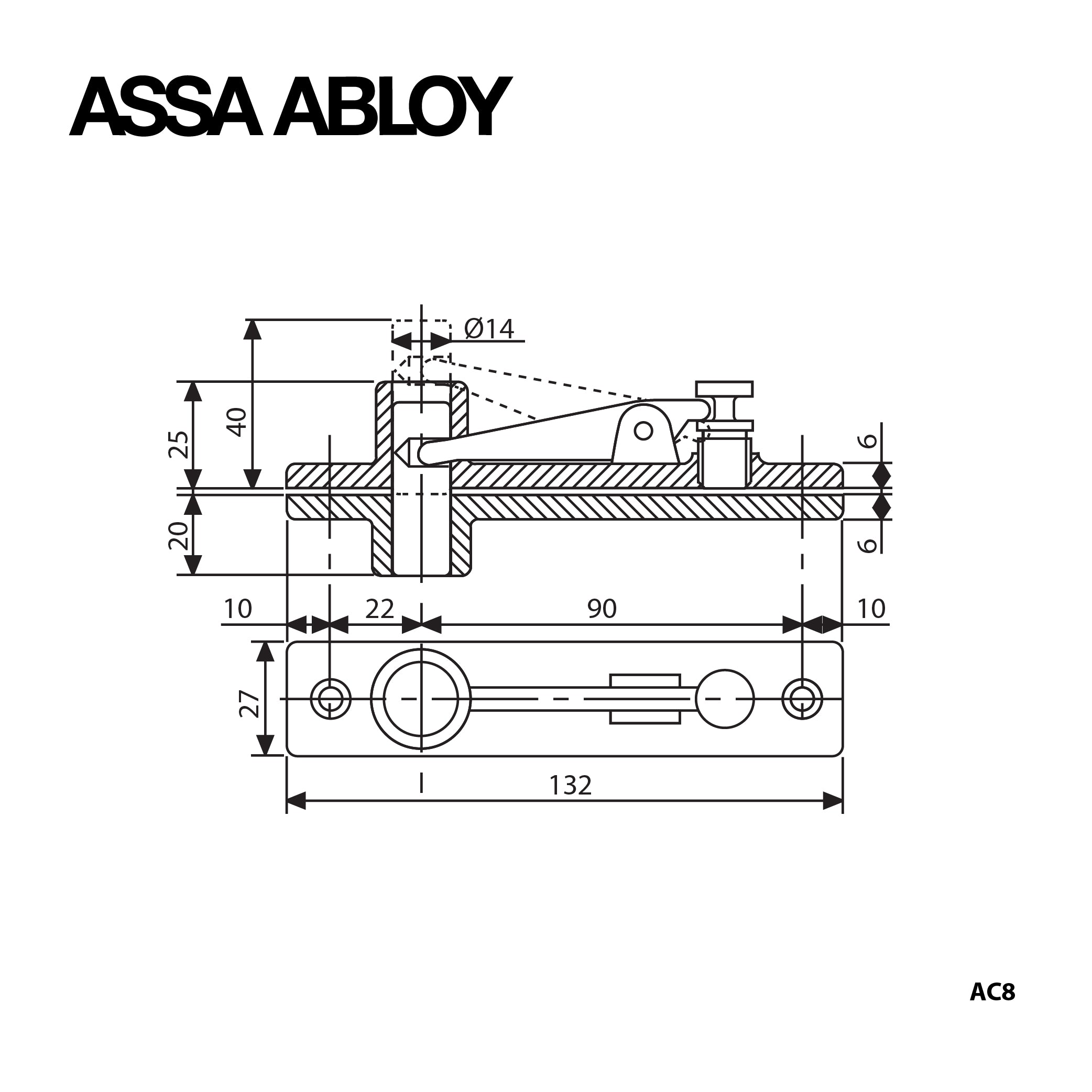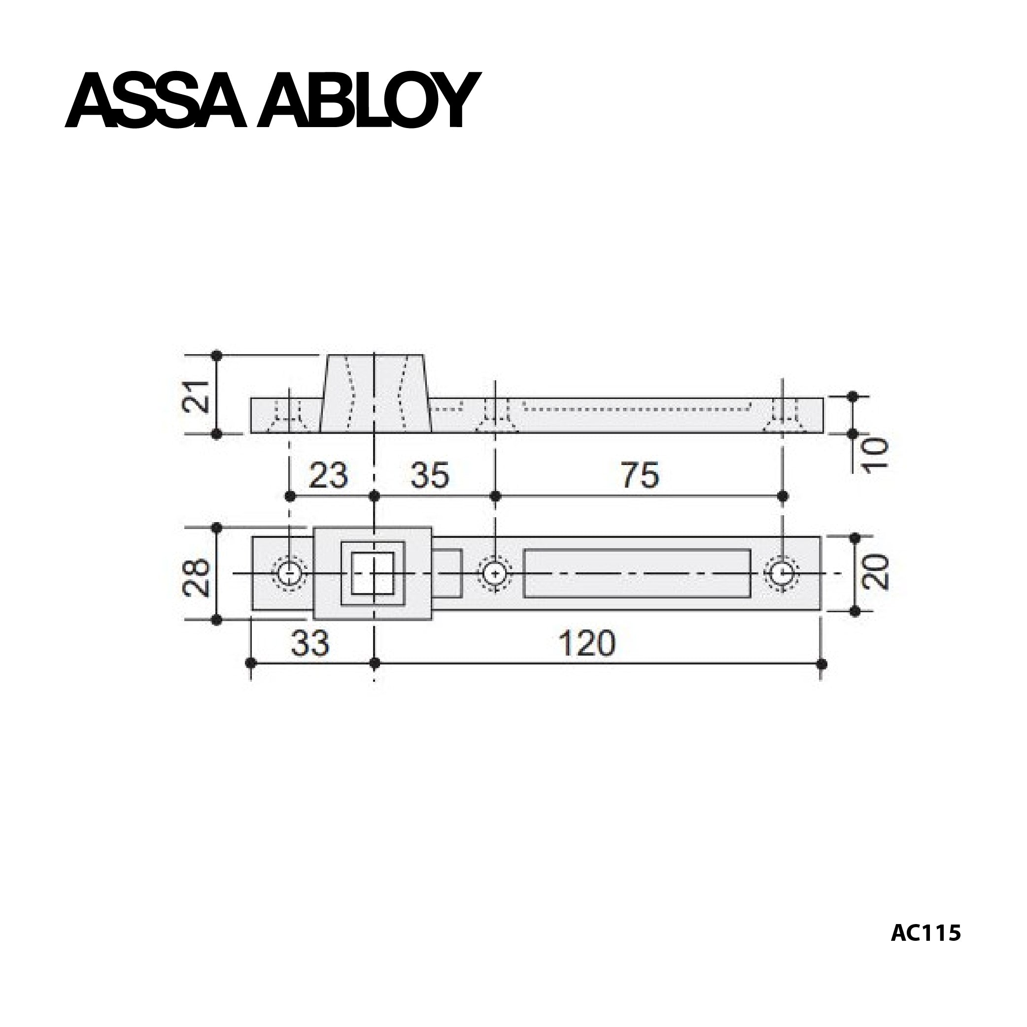 AC115- Assa Abloy Reversible bottom arm in steel for doubleaction doors, socket for Italian squared spindle.