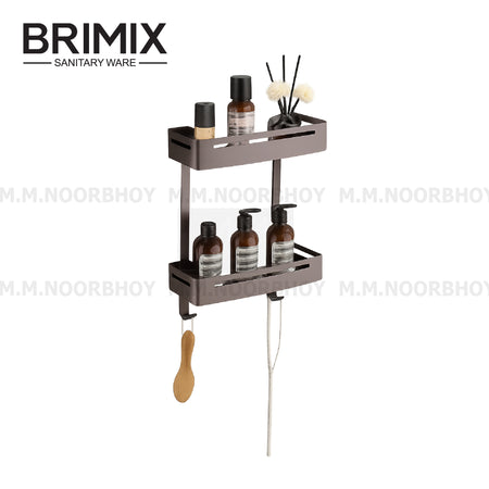 Brimix Double Shelf Corner Rack Aluminum Square Design Gunmetal Grey Finish - YI-BRI/CR/GRY/5685NG-2