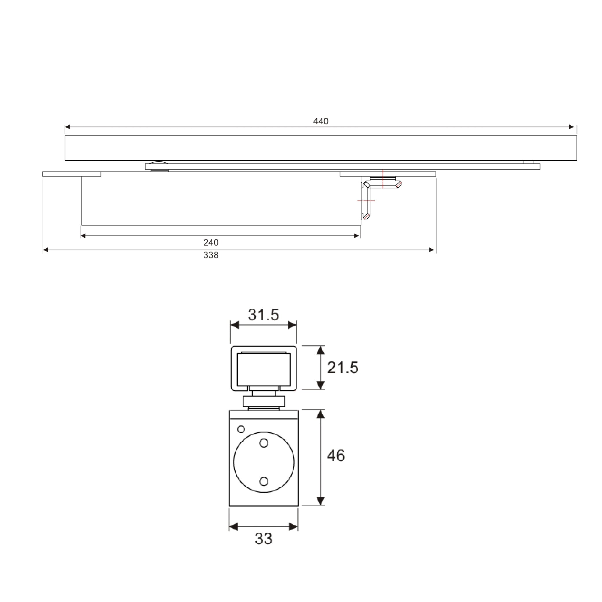 EuroArt Cam Action Concealed Door Closer, Opening Angle 120° - DC3024