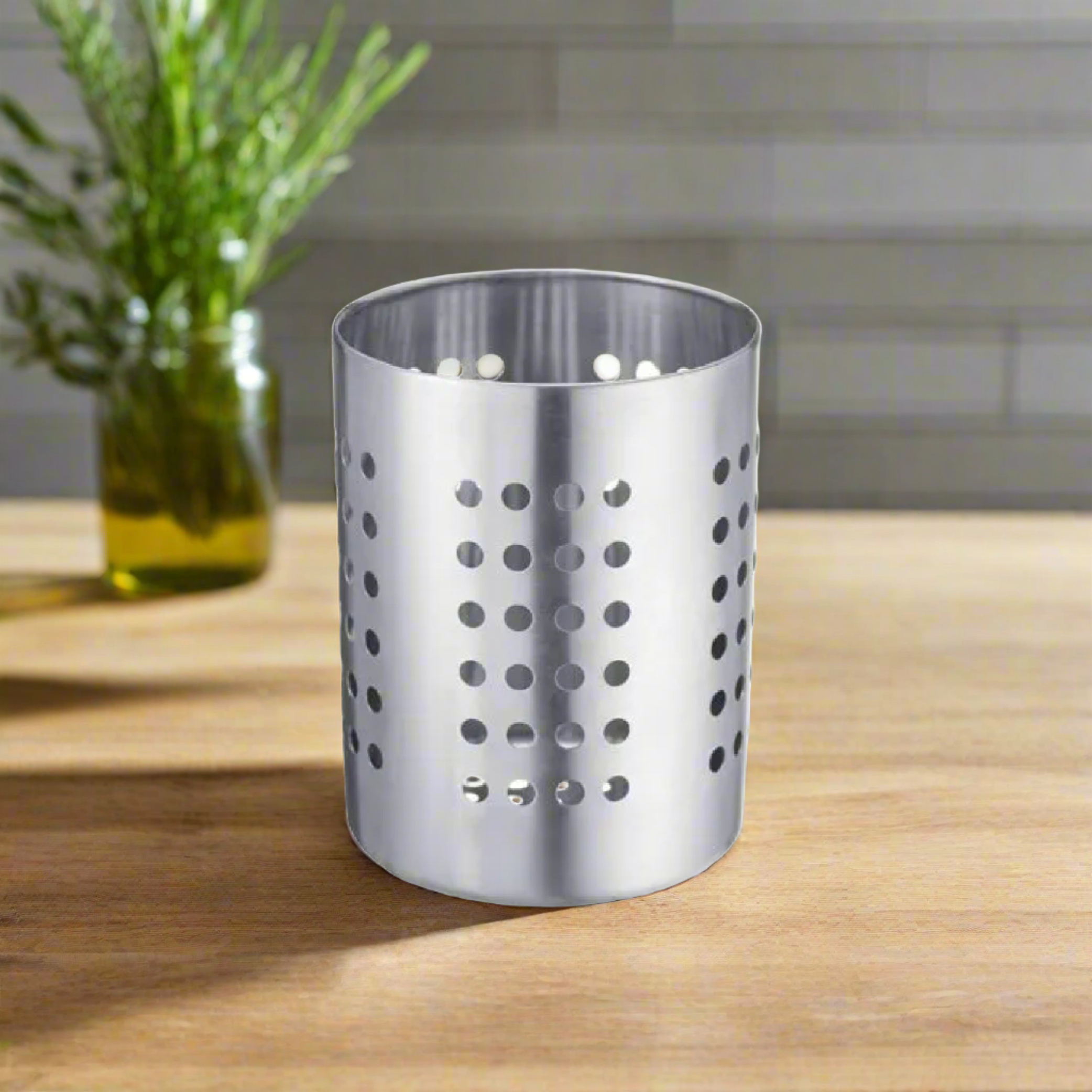 This durable stainless steel cutlery basket is ideal for practically storing cutlery, kitchen utensils such as cooking spoons, ladles and turners or cutlery already wrapped in napkins. It is also ideal as a drip tray/rinsing basket, because the holes allow rinsing water from wet utensils to drain off after cleaning. Its extremely robust quality makes it particularly suitable for daily use in professional kitchens.