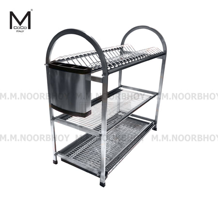 Mcoco Stand 3 Shelf Dish Rack With Cutlery & Spoon Holder Stainless Steel Finish - WDJ680