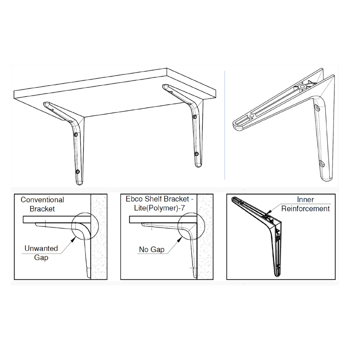 Ebco Shelf Bracket Lite (Polymer) 7 (Each) - EBCO/SB/SBLP-7