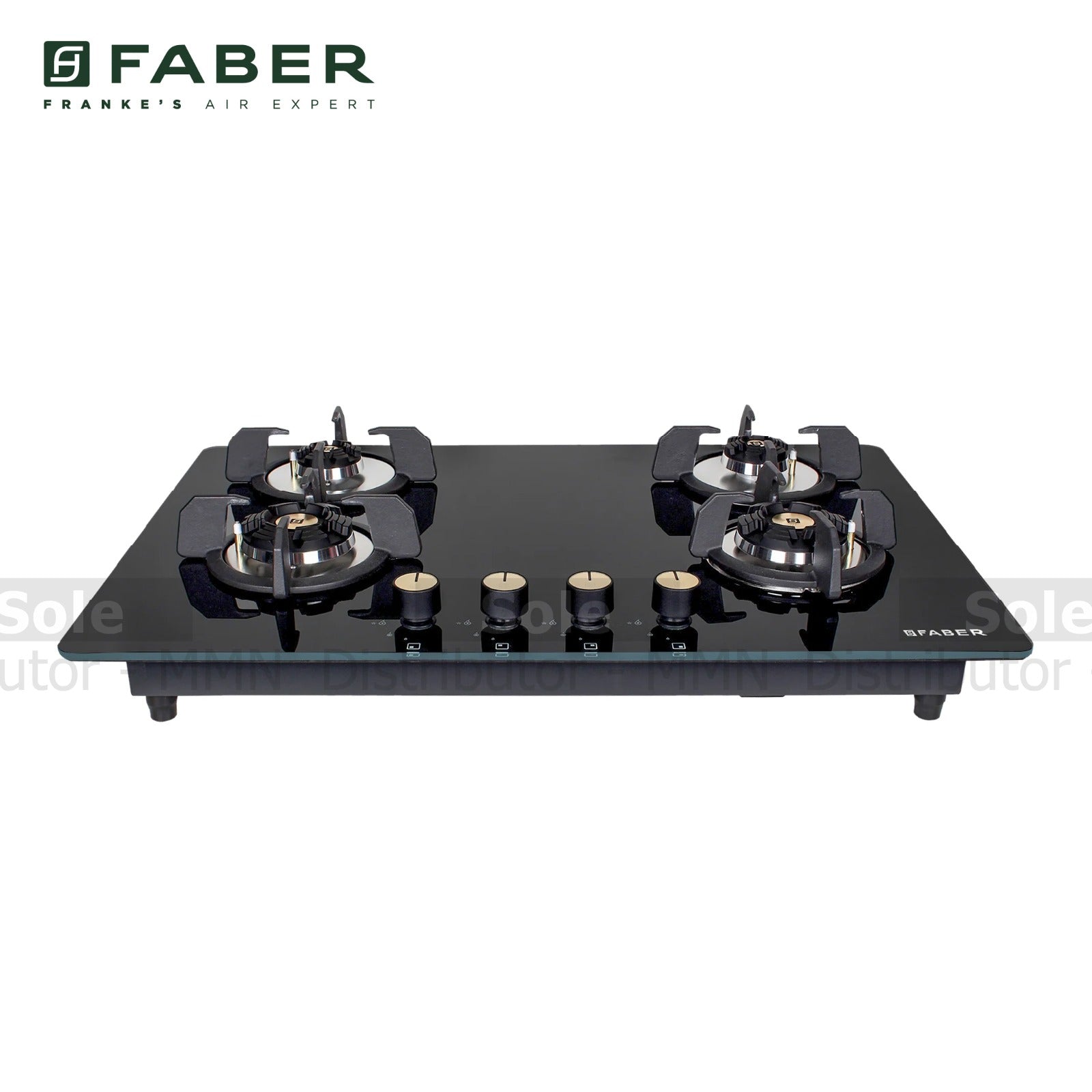 Faber 4 Burner Gas Hob with Cast Iron Supports Black Tempered Glass 8mm - FB/HOB-MX/BG/784/106.0603.582