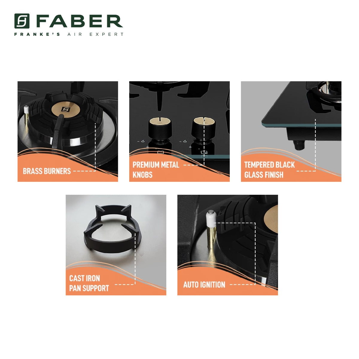 This Hob Cooktop has tempered Black Glass Edge Glass Finish. The glass finish is not only durable and long-lasting but also beautifies the aesthetics of your kitchen. The Tempered Black Glass is easy to clean, heat resistant and scratches.