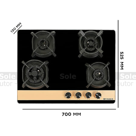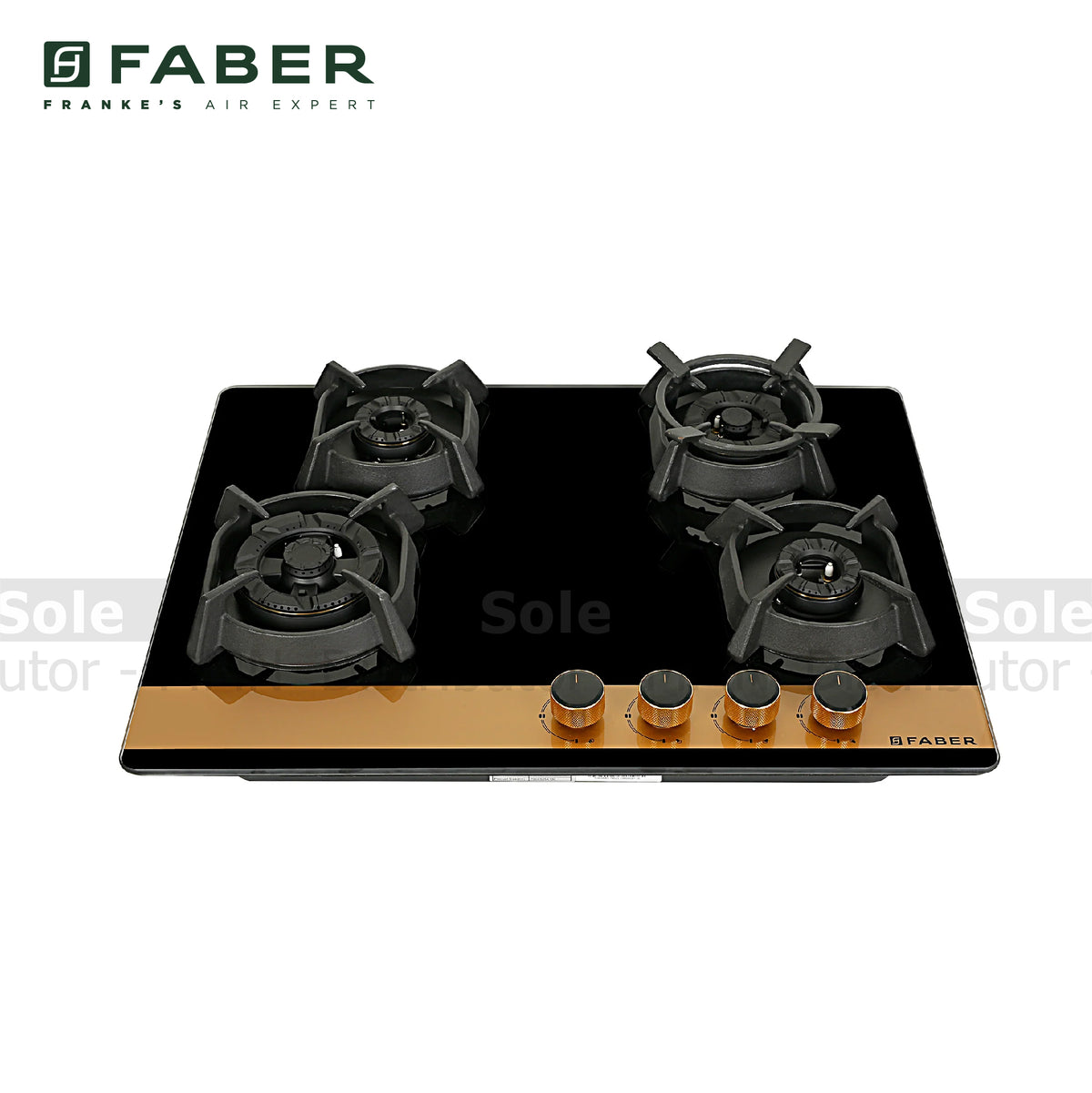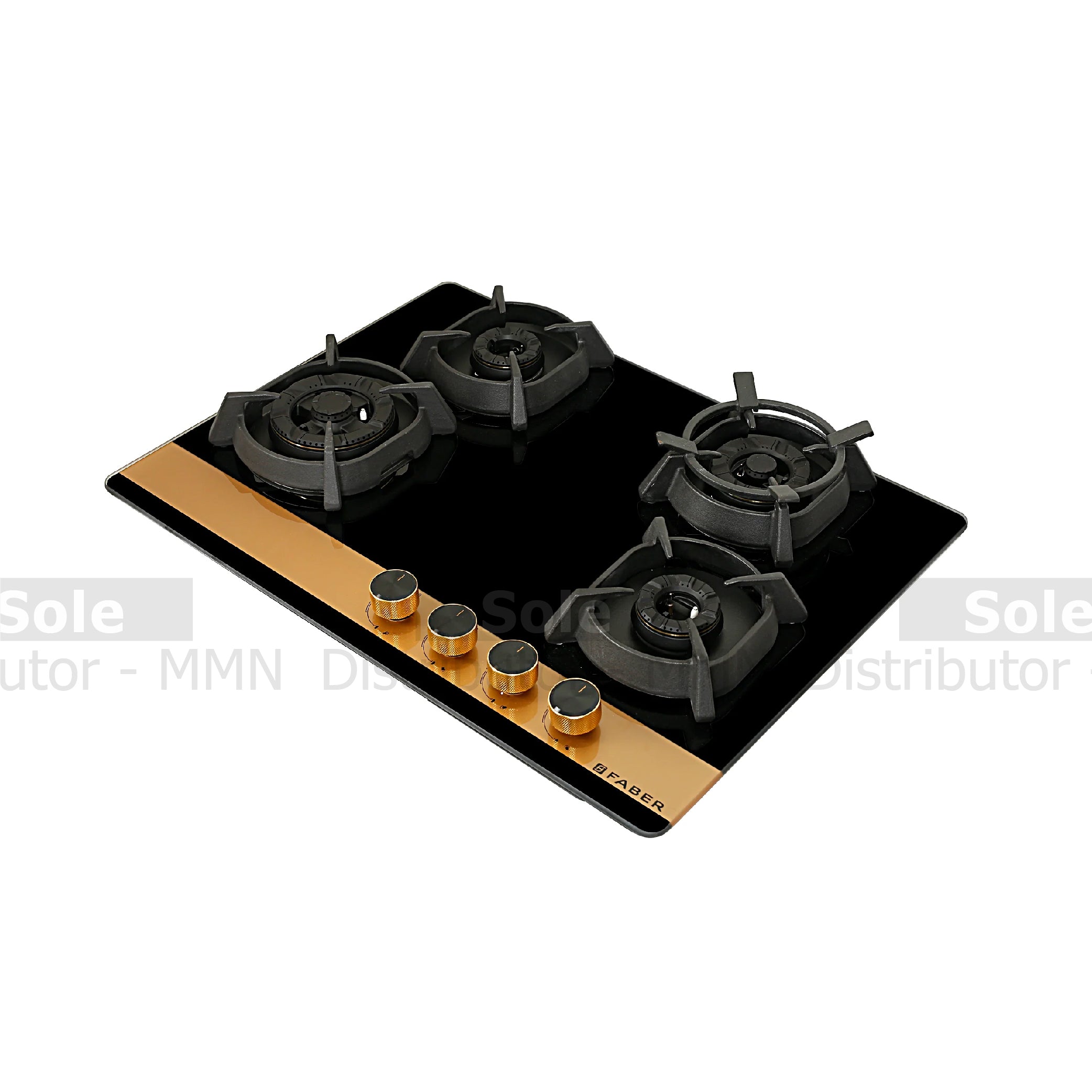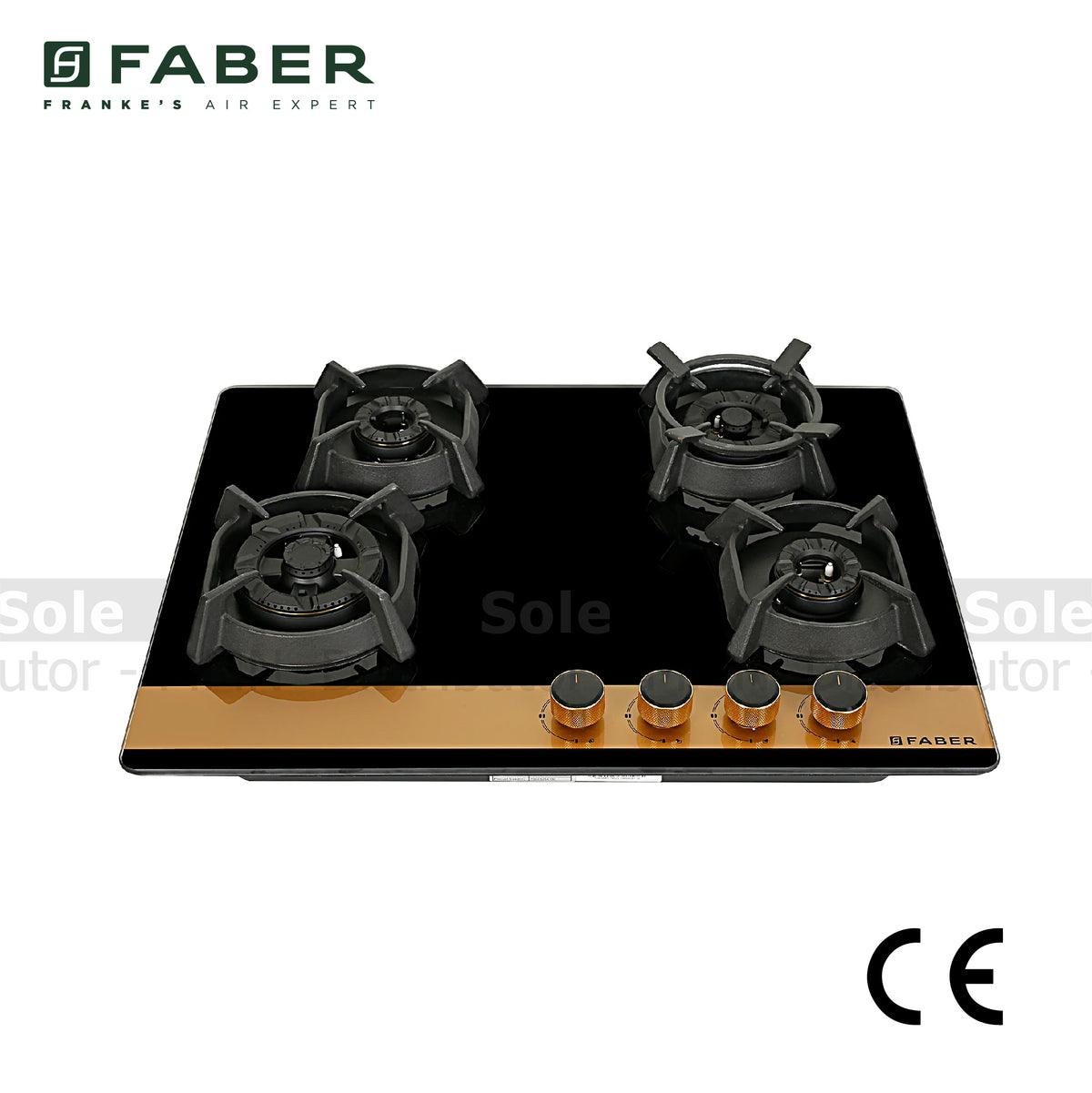 Faber Gas Hob UTOPIA PRO HT 804: Black Glass 4 burners with cast iron supports - FB/HOB-UT/BG/804/106.0679.386
