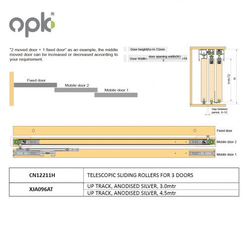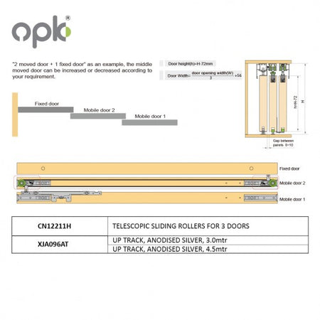 Opk Sliding Telescopic Cable System Roller Set (For 3 Door) , Door Weight 80Kg - OPKCN12211H