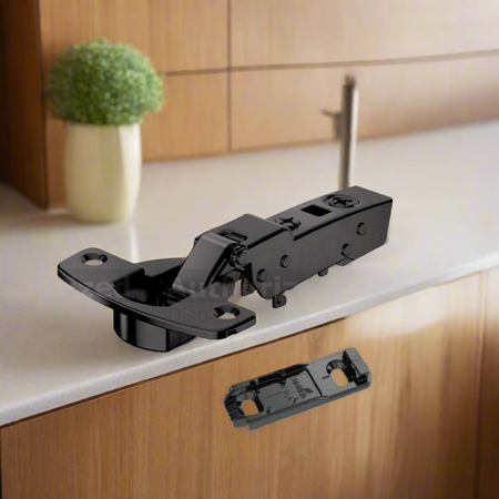 HT9090967+93080380 - Hettich Sensys 8631i, obsidian black, overlay door 32mm door thick, opening angle 95° with Black Plate - Pair