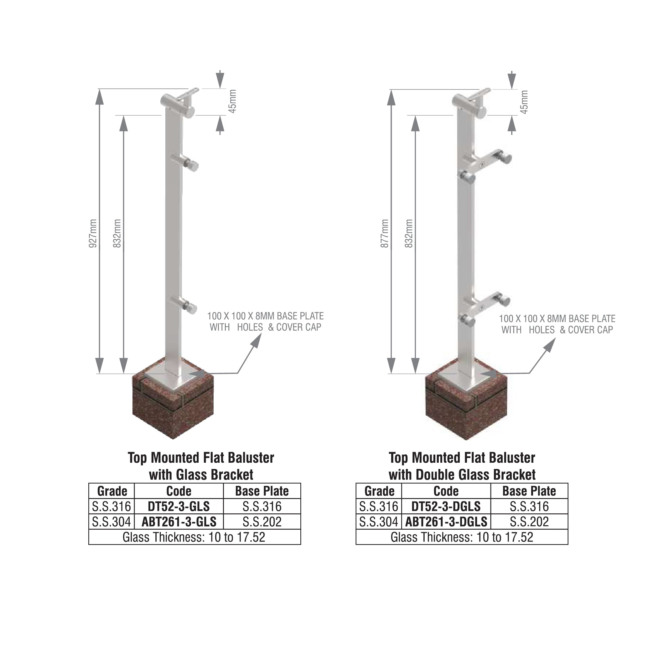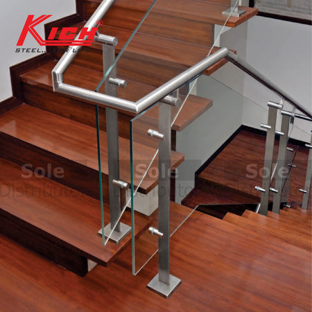 Kich Handrail Top Mounted Flat Baluster System With Glass Stainless Steel 316 Grade - DT52-3-GLS