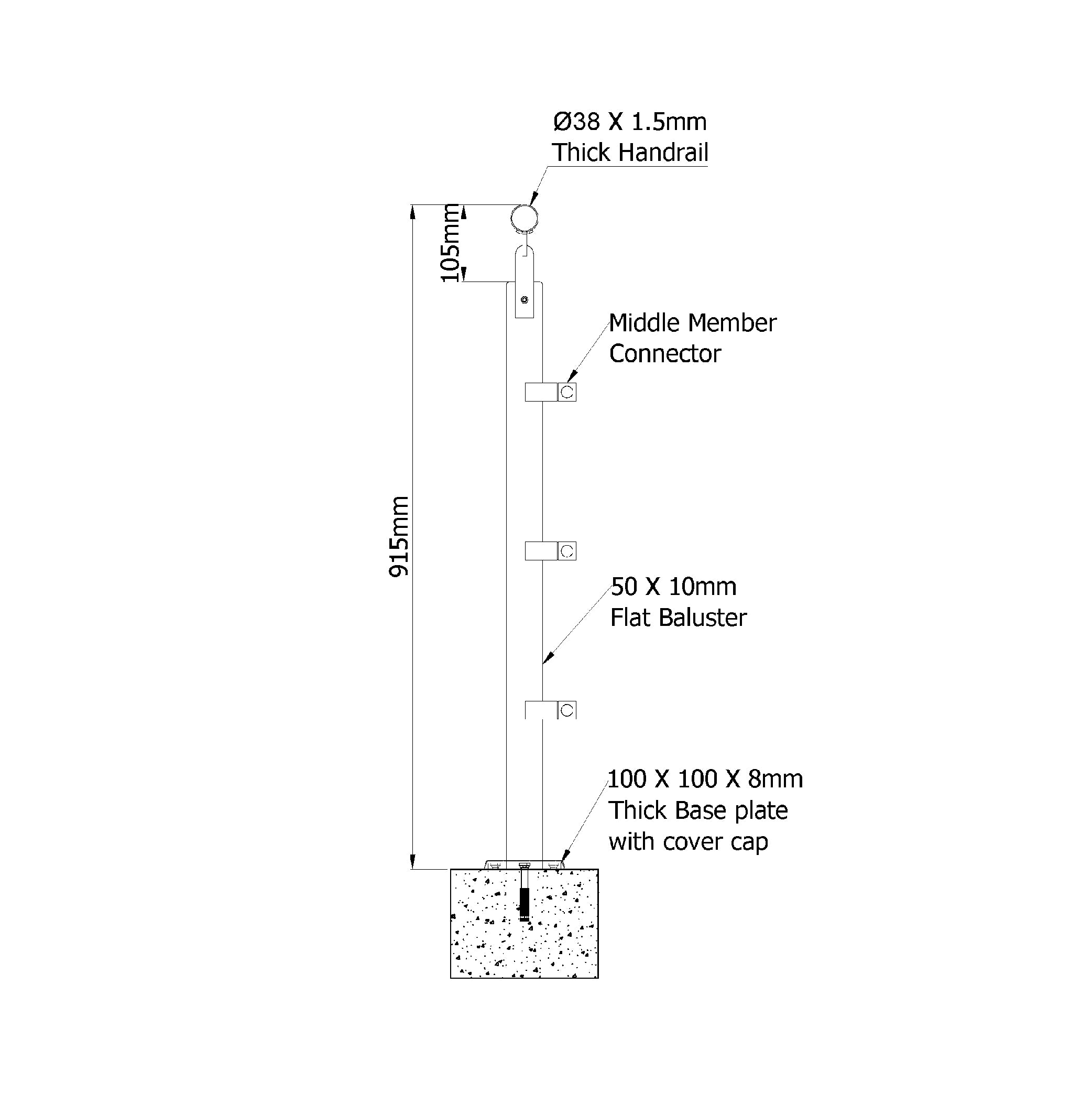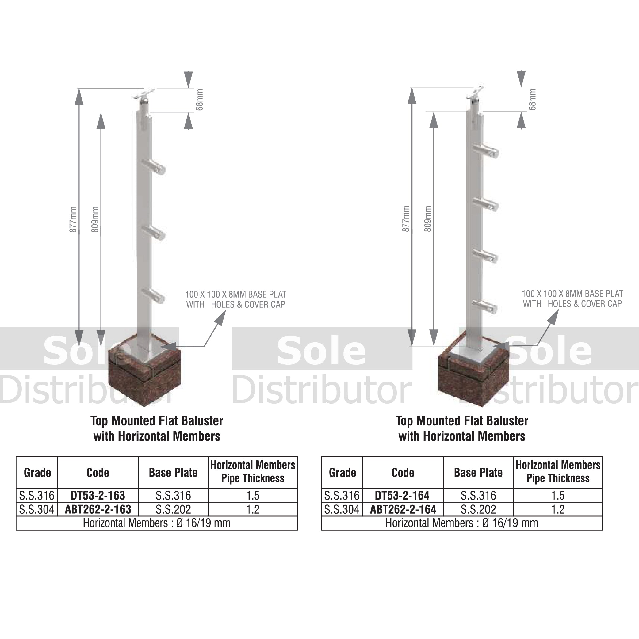 - Corrosion Resistant High Grade AISI 316 Stainless Steel Top Mounted Flat Baluster System With Horizontal Members.