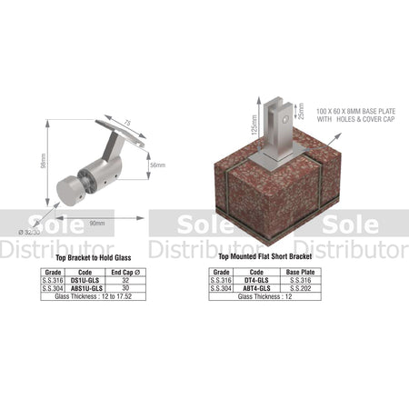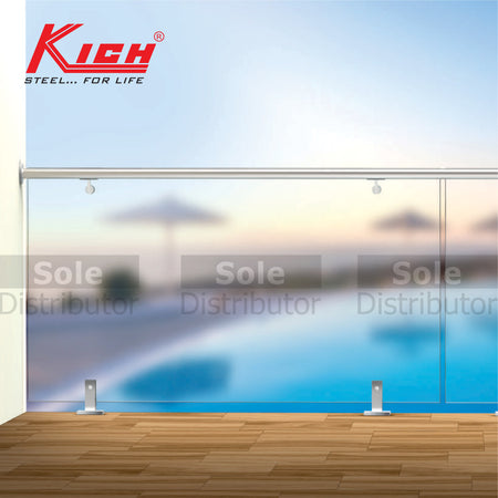 Kich Handrail Top Mounted Flat (Short Bracket) System With Glass For Balcony Area Stainless Steel 316 Grade - DT4-1-GLS