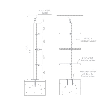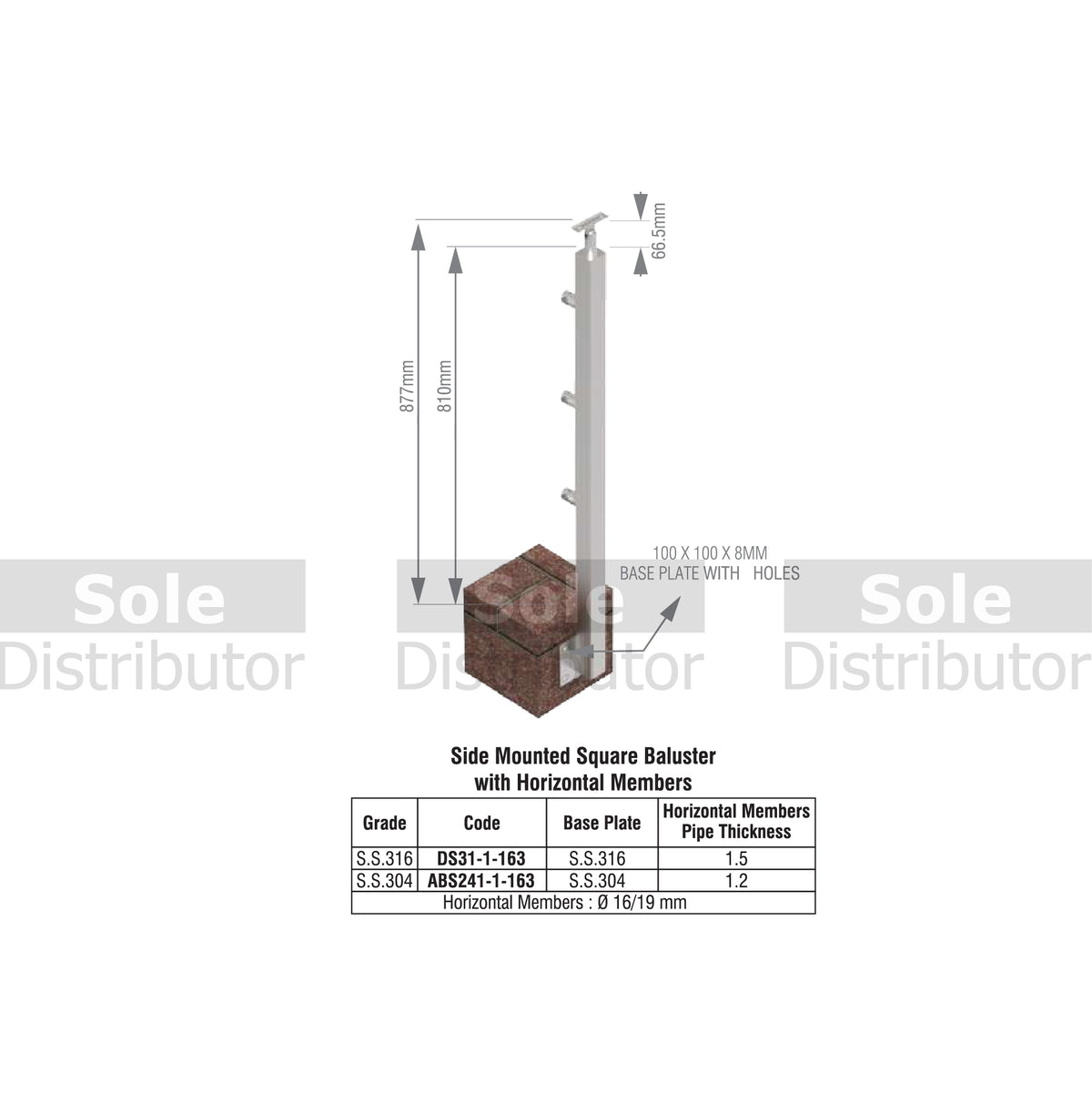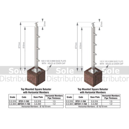 - Corrosion Resistant High Grade AISI 316 Stainless Steel Top Mounted Square Baluster System With Horizontal Members.