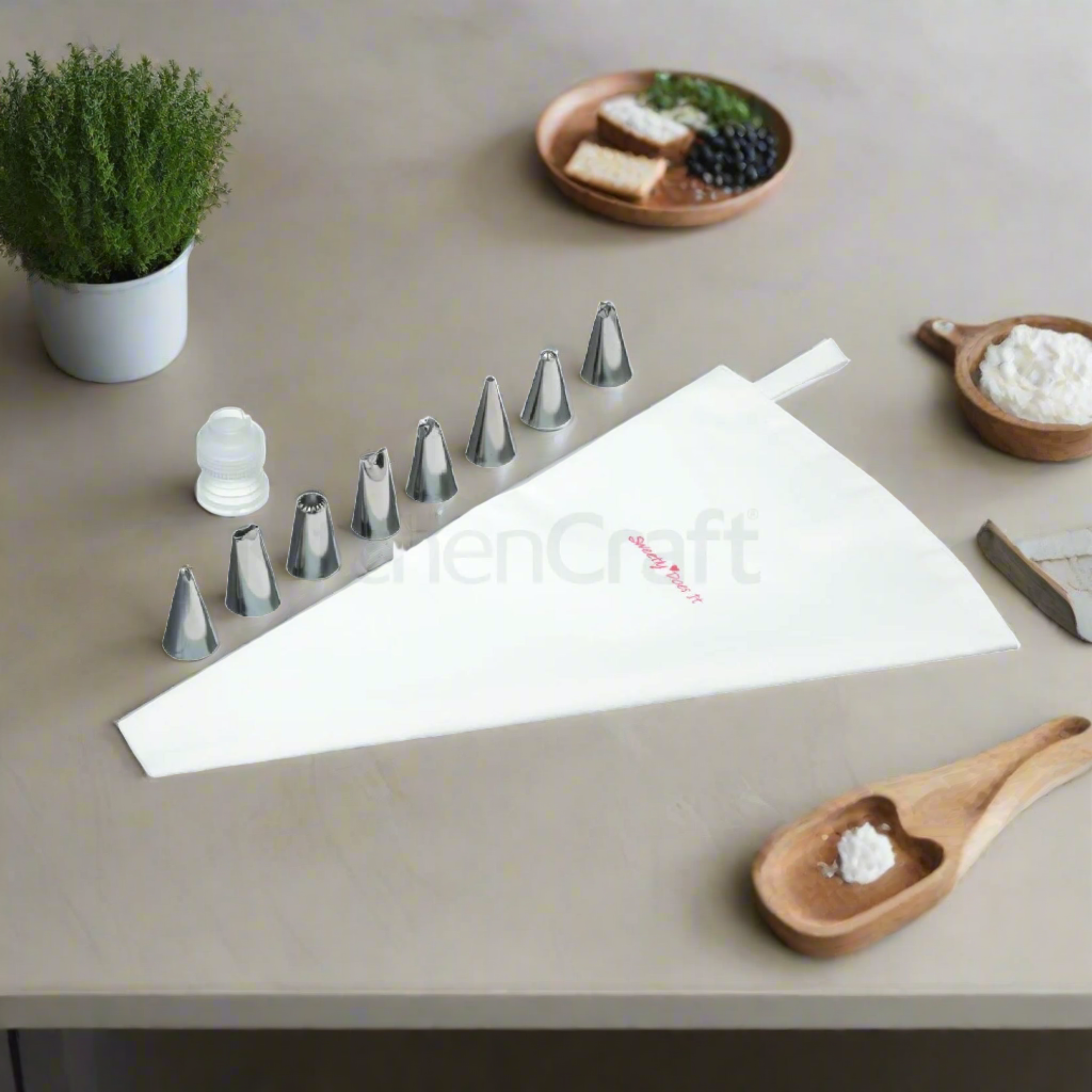 Create a variety of different icing effects on cakes and treats, adding the perfect finishing touch to your delicious kitchen creation. Including 8 assorted stainless steel nozzles, a reusable piping bag, and a coupler for quick and easy nozzle changing, you have everything you need to add those delightful and meaningful touches to your cakes. An ideal gift for any budding cake enthusiast.