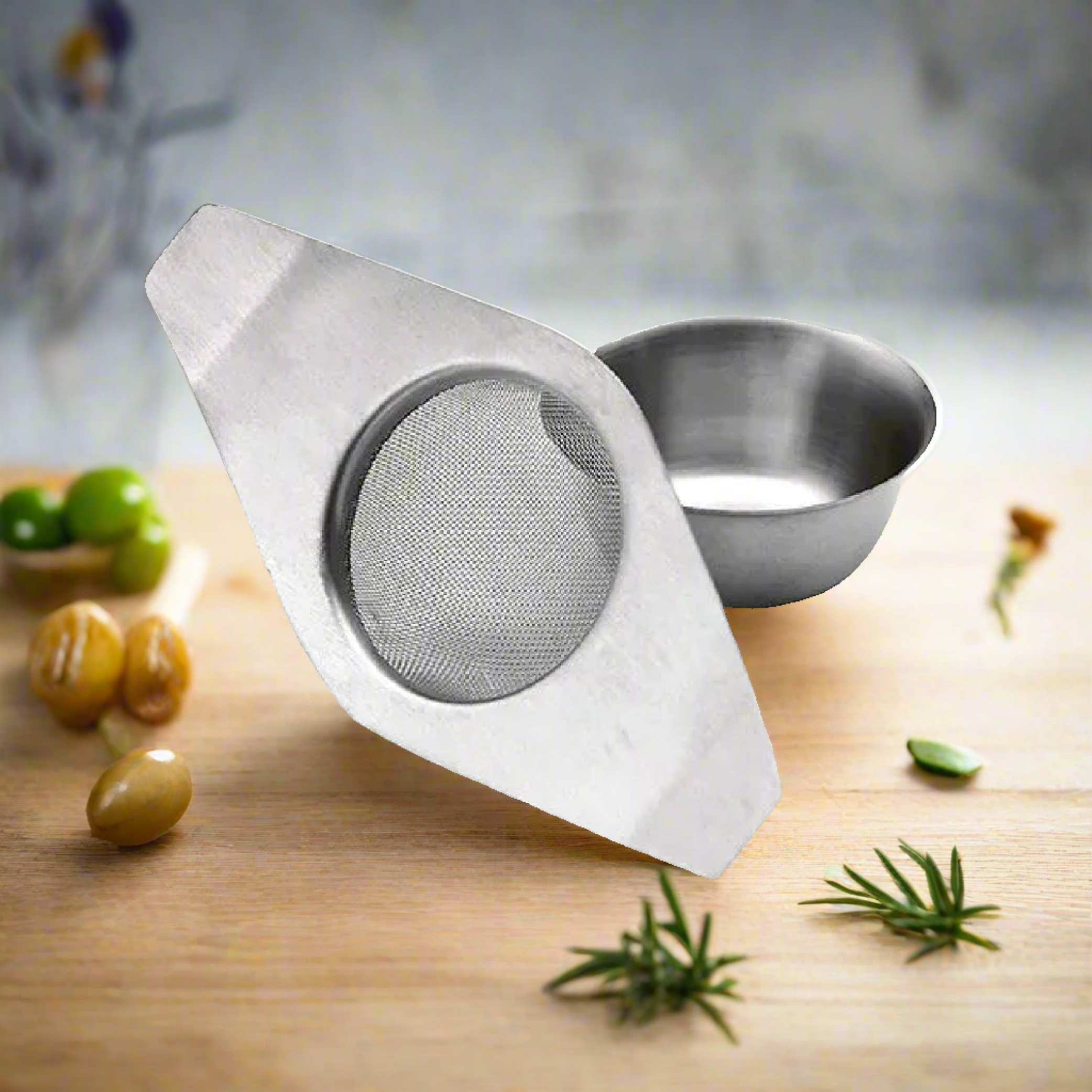 Brew your favorite tea with ease with the KitchenCraft Double Handled Tea Strainer. It is made of high quality stainless steel with a fine mesh gauze, twin resting arms and a handy drip bowl to prevent messes. This strainer provides a secure fit to cup and mug rims for a perfect cup of tea every time.