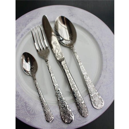 They are then finished at the bottom with a lace design that can also be seen on our Wild Apricity collection and etched glassware. The polished stainless steel finish looks stylish enough for special occasions while also being durable enough for everyday use.