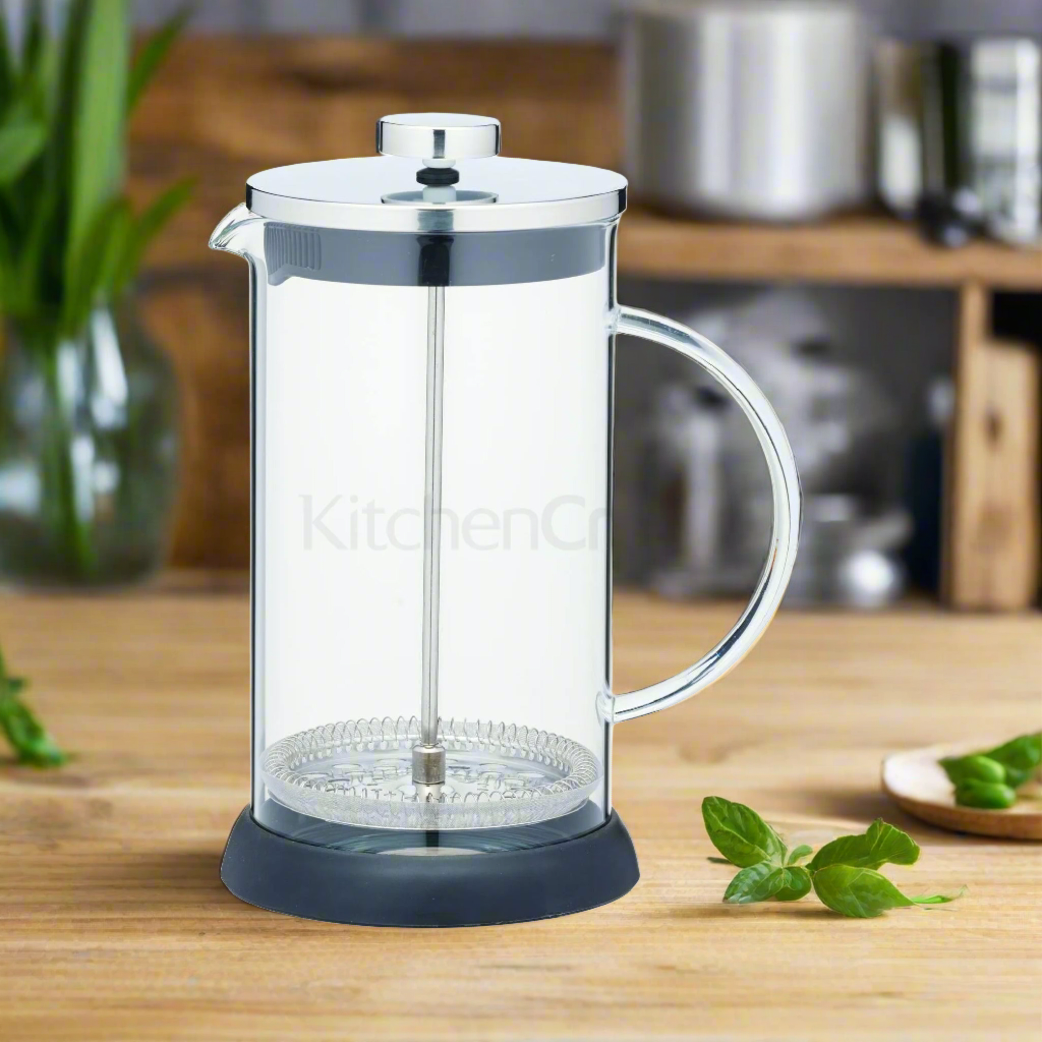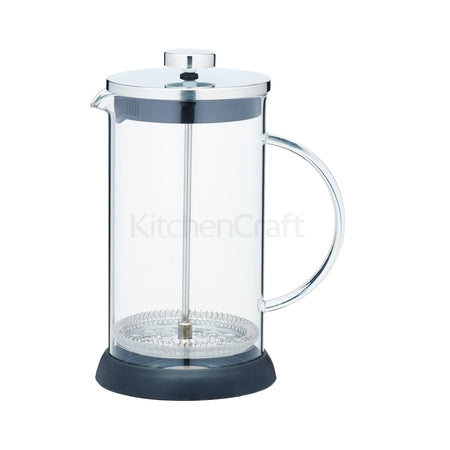 Brew rich, full-bodied coffee with the KitchenCraft Glass Cafetiere 8 Cup. Designed with a reusable fine mesh stainless steel filter, this French-press style brewer extracts essential oils from ground coffee beans, creating a robust and aromatic cup of coffee. A glass jug and handle with a Coffee Plunger complete this perfect brewing system for coffee connoisseurs.