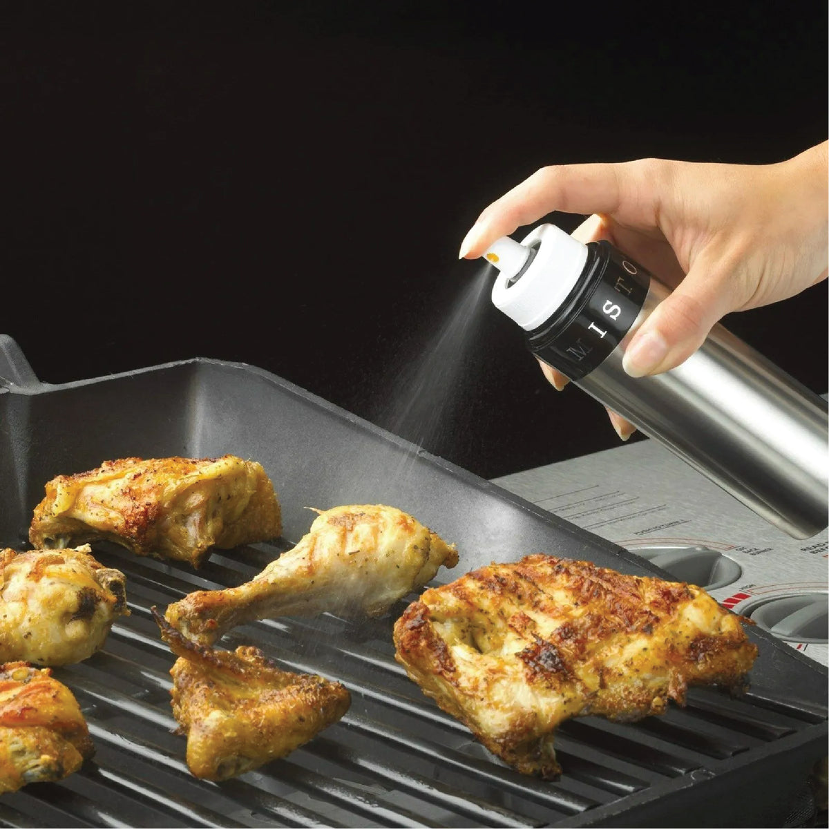 The gourmet olive oil sprayer is a non-aerosol, reusable bottle which sprays many types of cooking oils. From canola oil to peanut oil, vegetable oil to sunflower oil, this sprayer can also be used with vinegar. Designed with the health-conscious cook in mind, this eco-friendly non-aerosol sprayer is BPA free and is perfect for adding flavor by using less oil and reducing calories and fat.