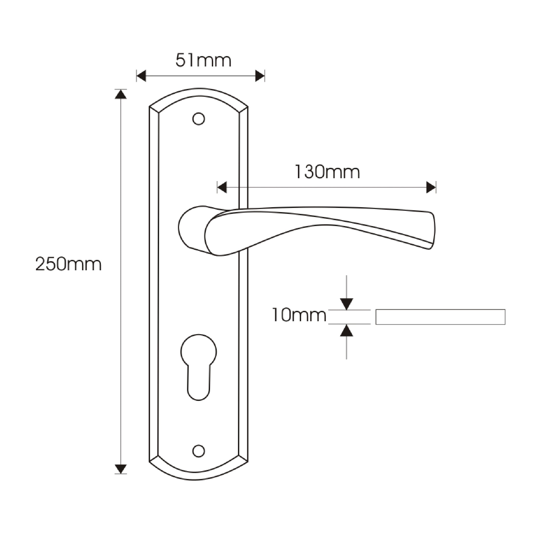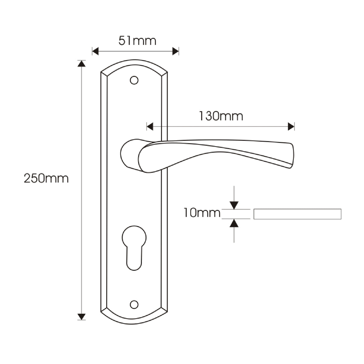 EuroArt Lever Handle on Back Plate Dimension 250x51x130mm Satin Stainless Steel - LBS711/SSS