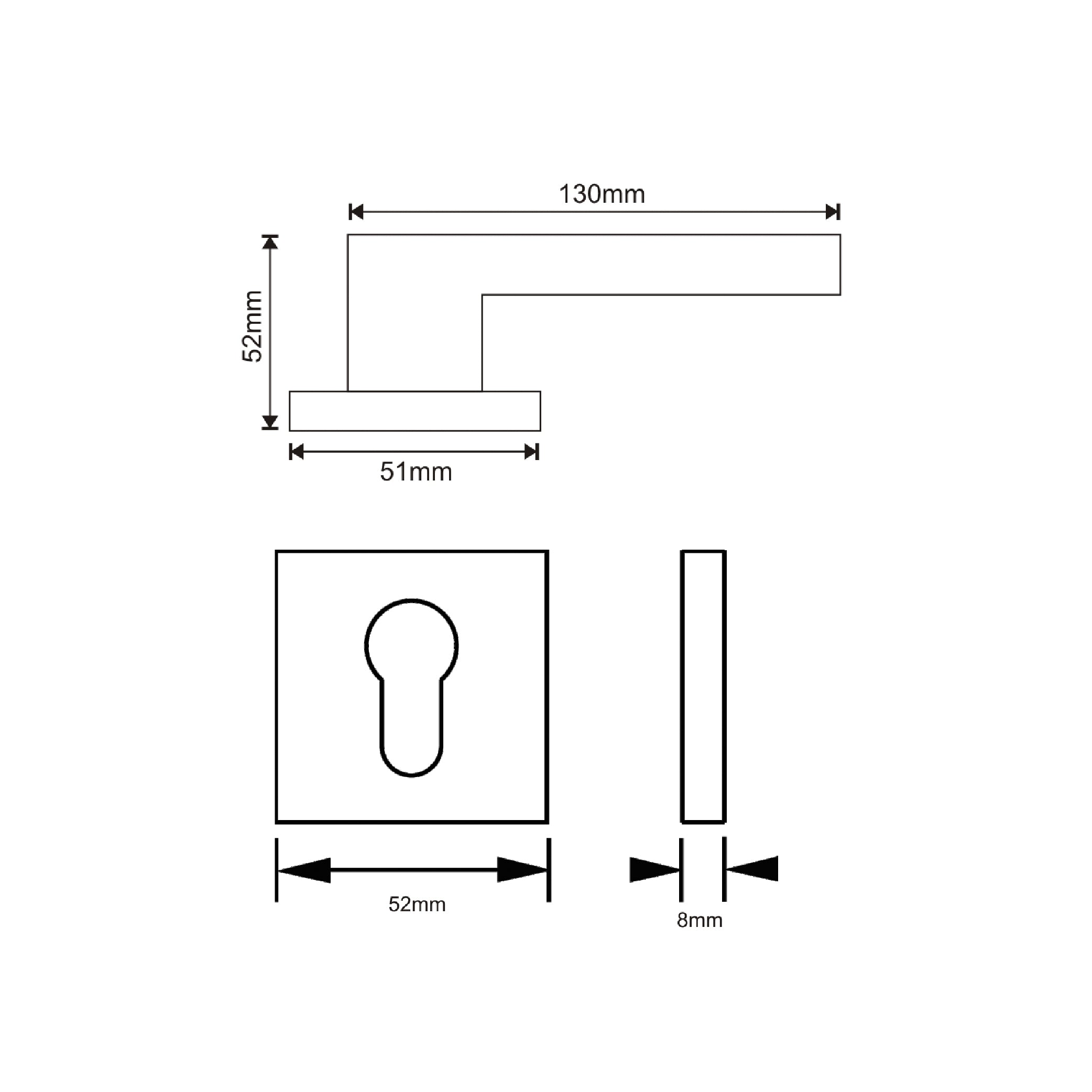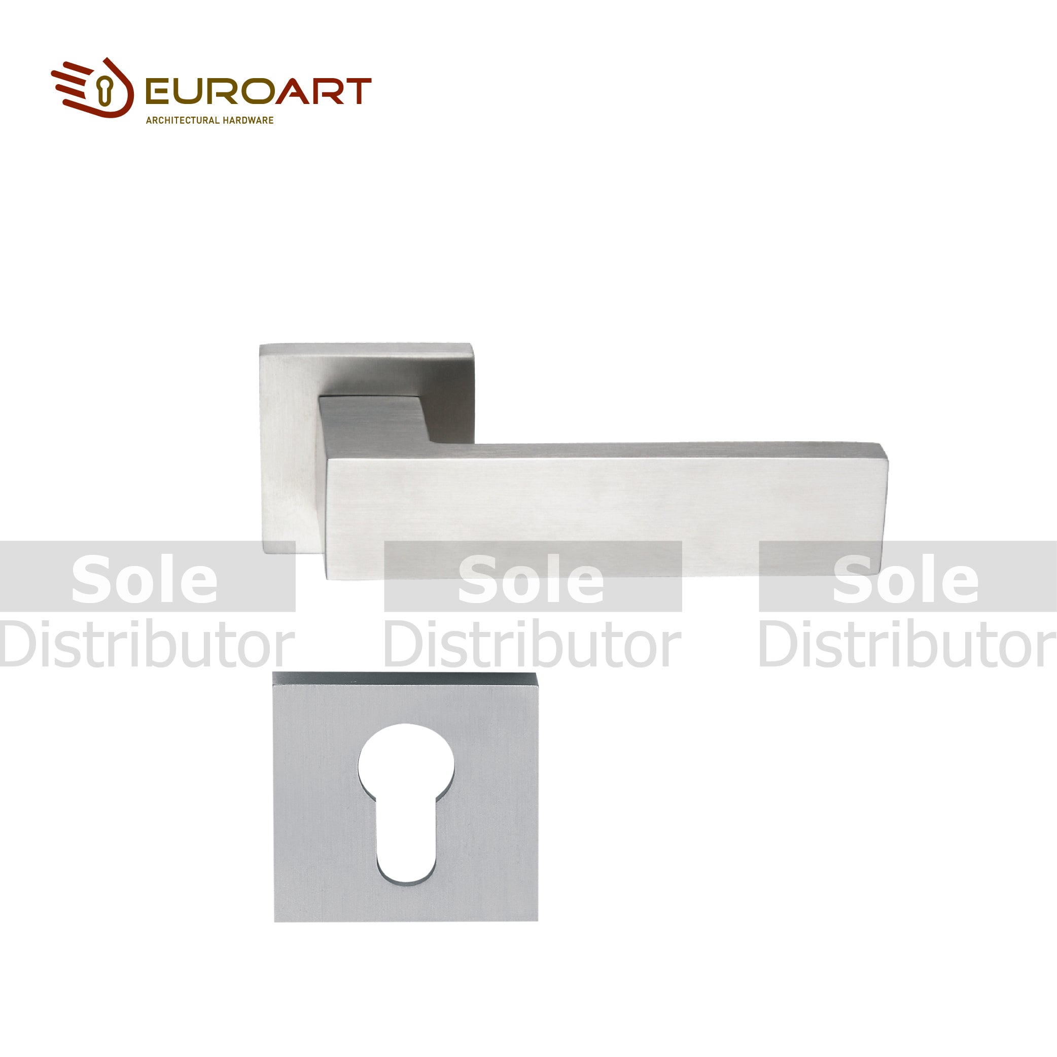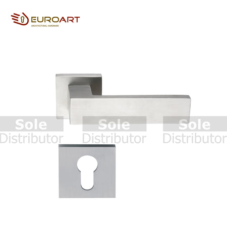 EuroArt Lever Handle On Square Rose Dimension 130x52x51mm Satin Stainless Steel Finish - LRS603SS