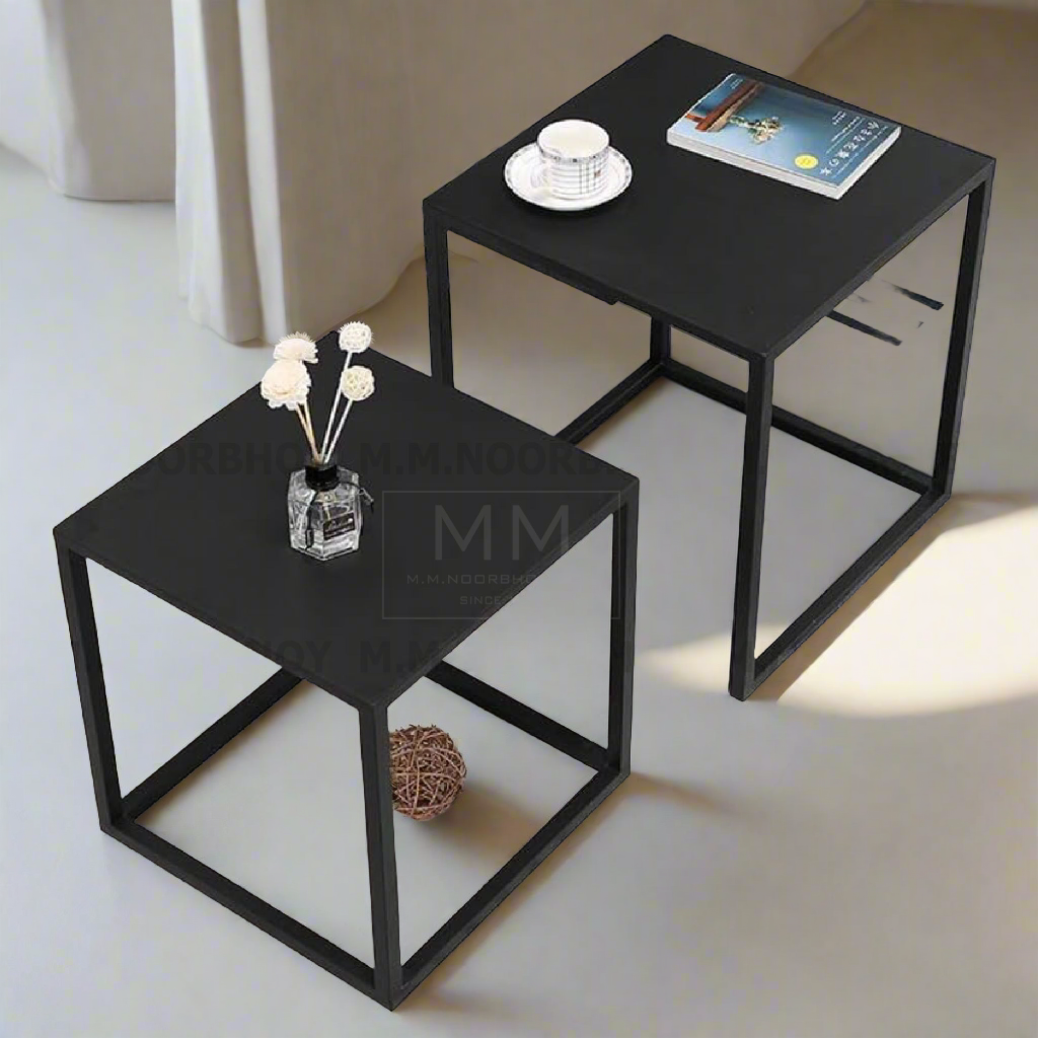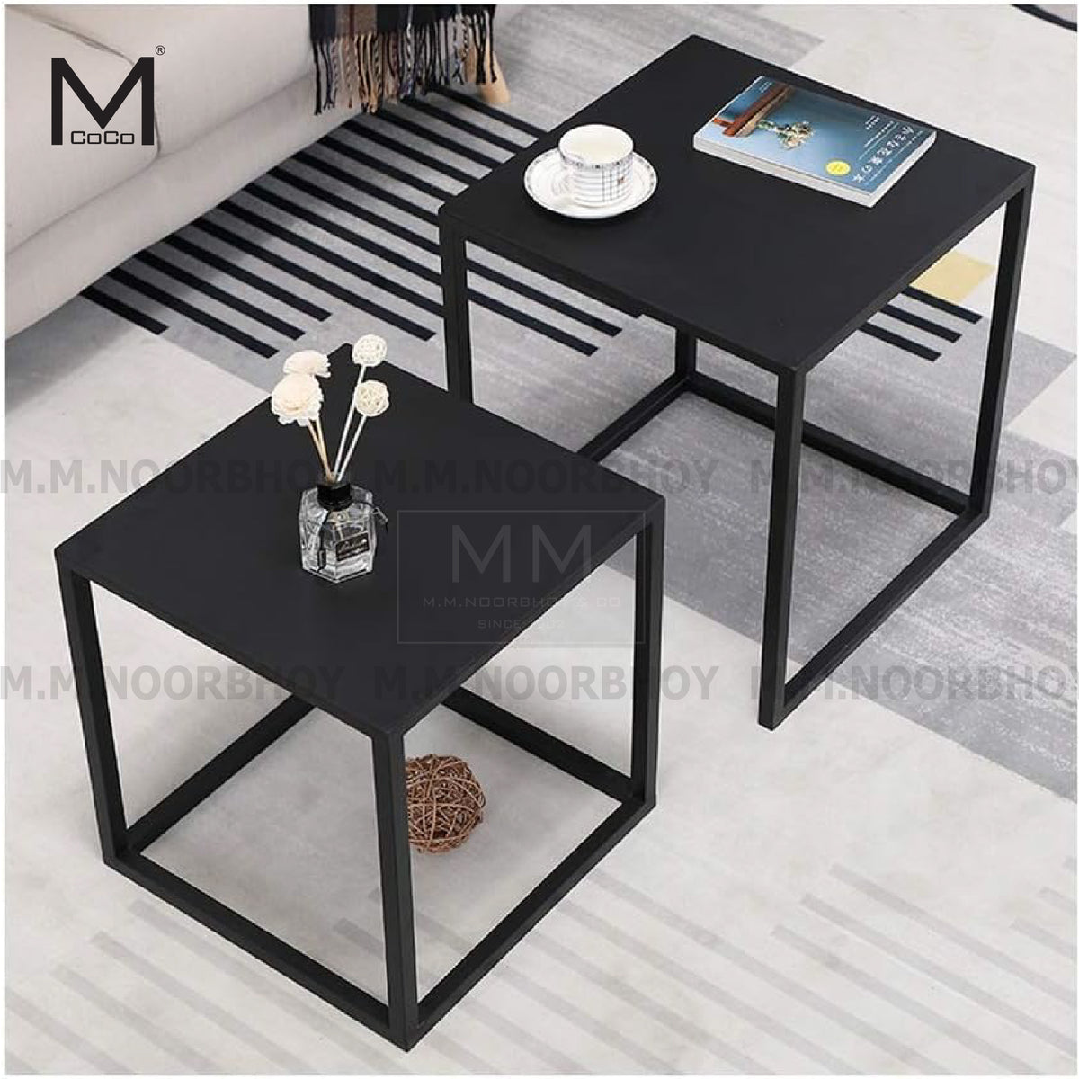 Mcoco 2 Pieces Steel Multipurpose Side Table Black Color 34x34x37cm & 38x38x41cm Each - YI-DS003