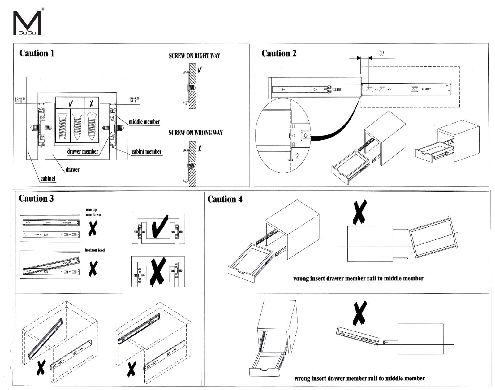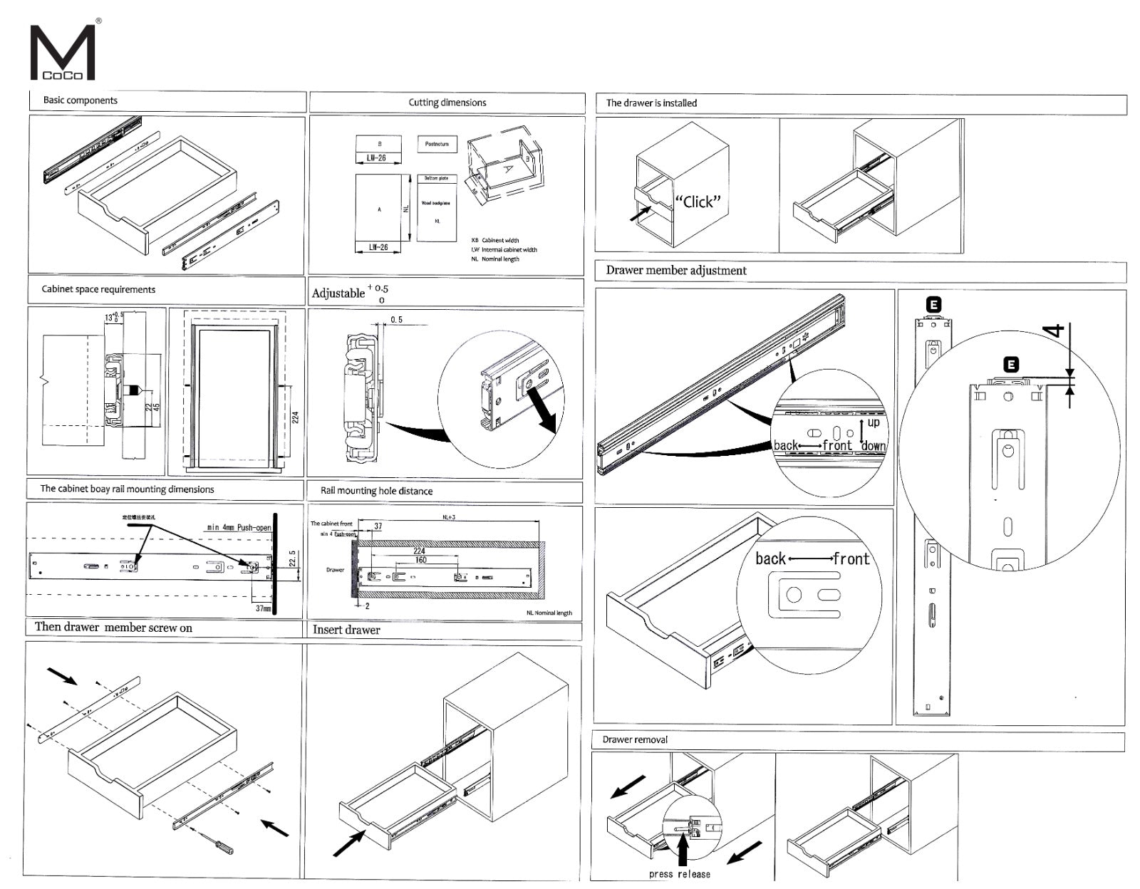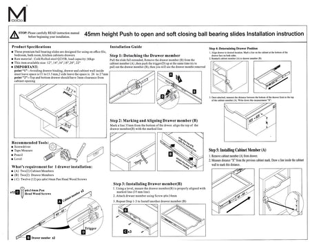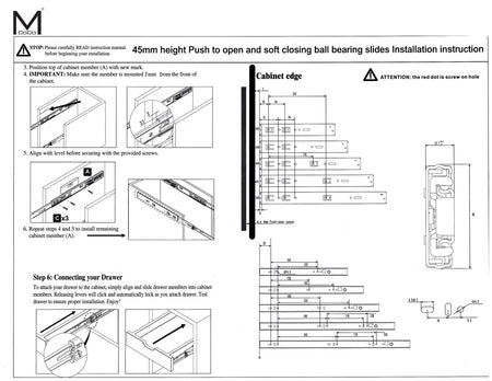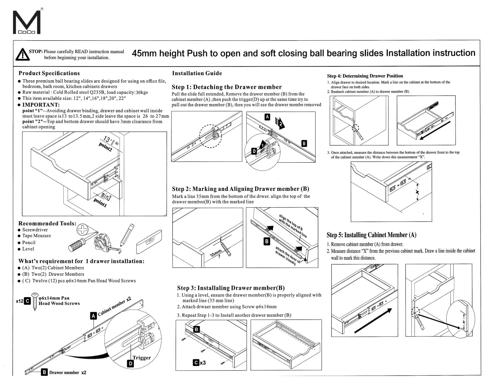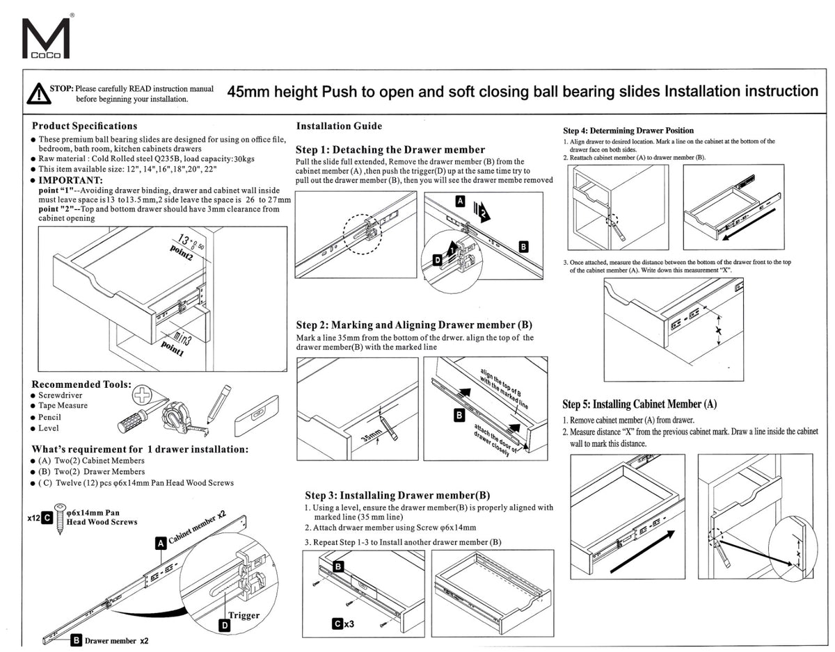 Mcoco Drawer Railing Inch Between 12 To 20 Soft Close & Push Open Ball Bearing Drawer Slide Pair - XNA2644