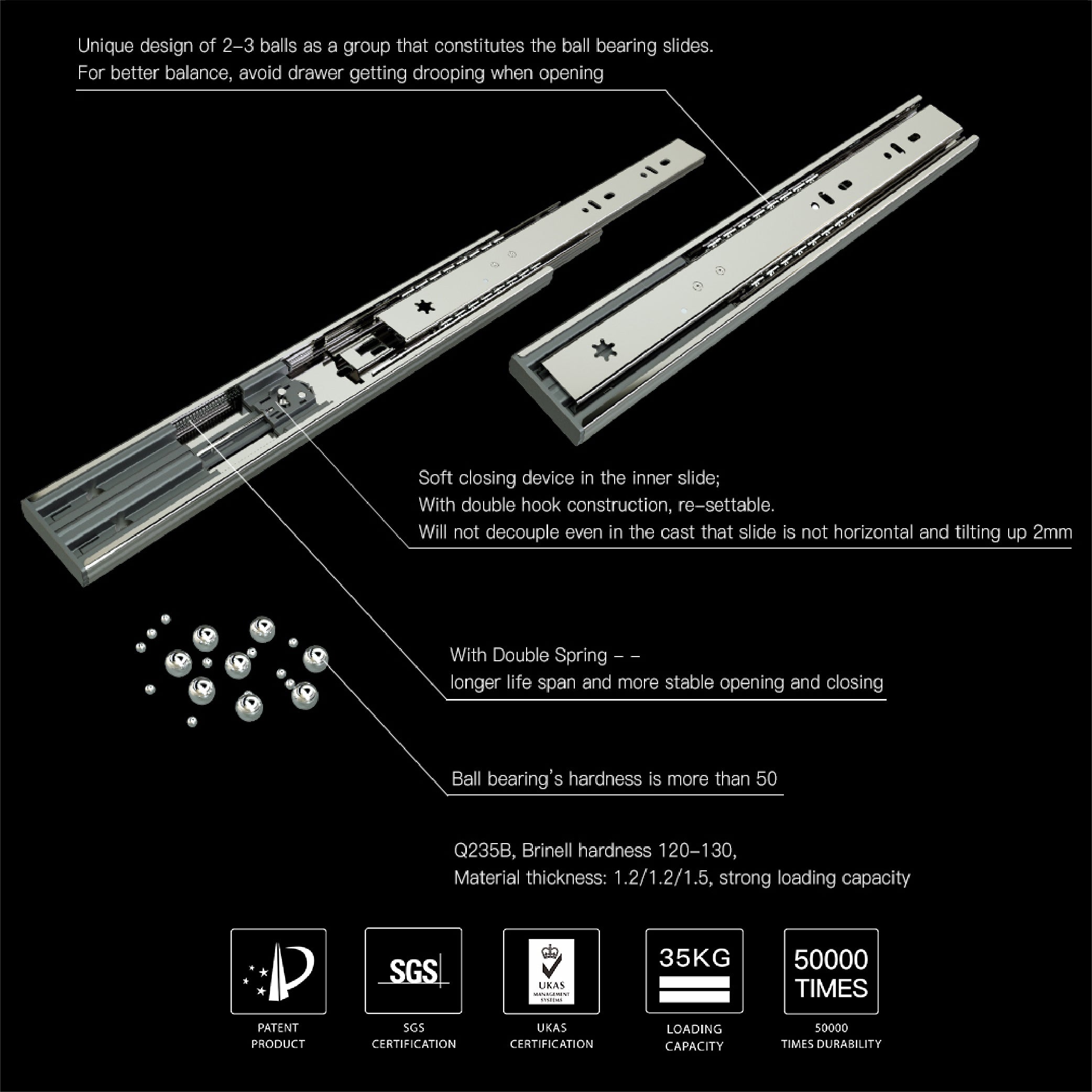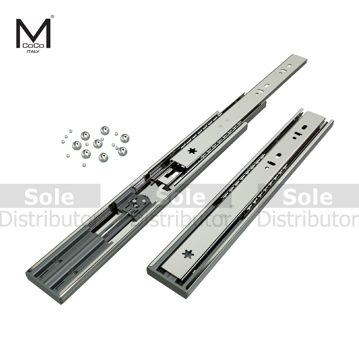 Mcoco Drawer Railing Soft Closing Full Extension Ball Bearing Slide, Sizes 300-500mm, Zinc Plated - S4502A
