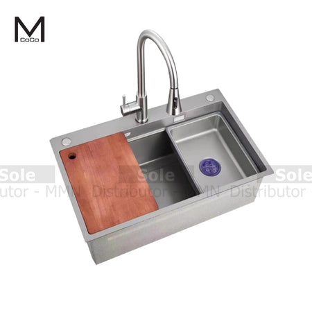 Mcoco Kitchen Sink Single Bowl SS201 PVD - Gun Grey with Small Basin and Cutting Board 750x460mm - MCO7546SINK/GRY