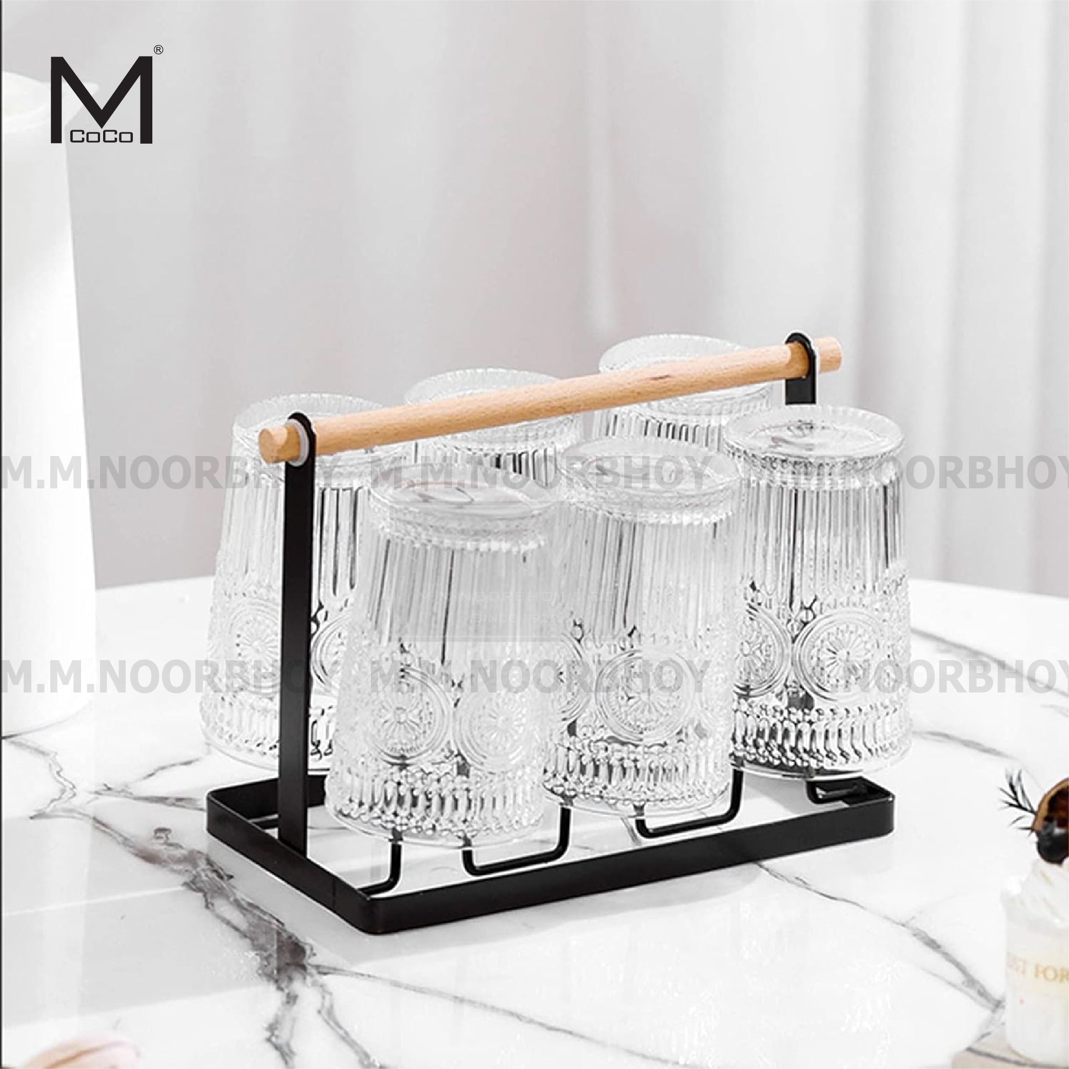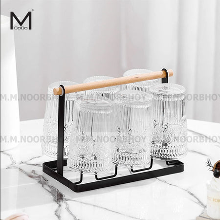 Mcoco Steel Black Color Cup Drying Rack Drainer Stand Holder with Wooden Handle Each - YI-188