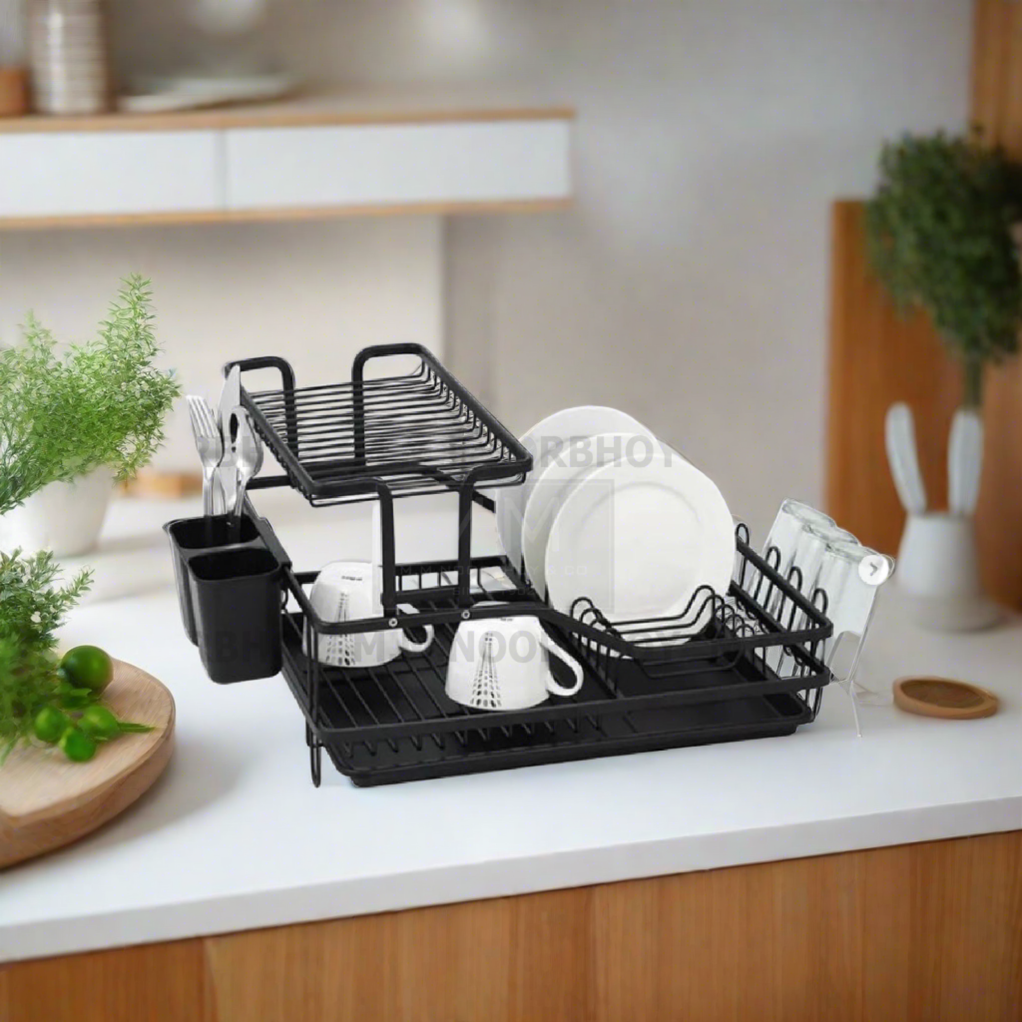 Discover the perfect blend of style and functionality with the Mcoco Brand Steel Black Color Dish Drying Rack. This sleek and durable rack not only adds a touch of sophistication to your kitchen but also provides ample space for drying dishes. Complete with a convenient utensil holder, this black steel dish rack is a must-have for efficient and organized kitchen cleanup.