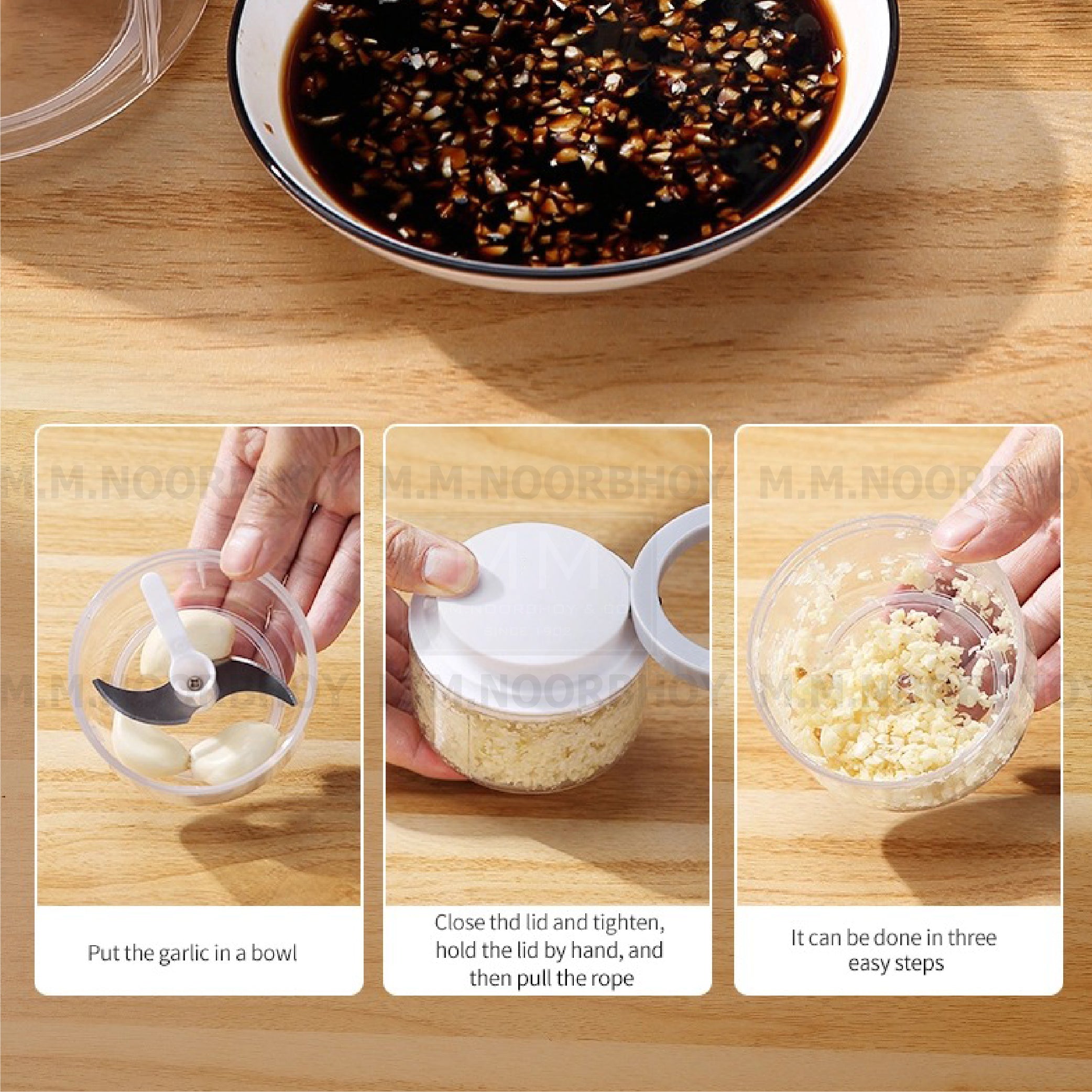 - Operation Tips - The blade of the garlic onion chopper is inlaid on the plastic handle in a three-dimensional shape. Although it is very sharp, you can hold the small pillar and try to avoid direct contact with the blade with your hands; when pulling the rope, please keep it horizontal, and the wrong pulling angle will cause a malfunction.