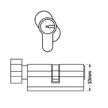 Kich Pin Cylinder Both Side Key, Size 60mm, Brass Satin Finish - KPC11KK60DSKSS