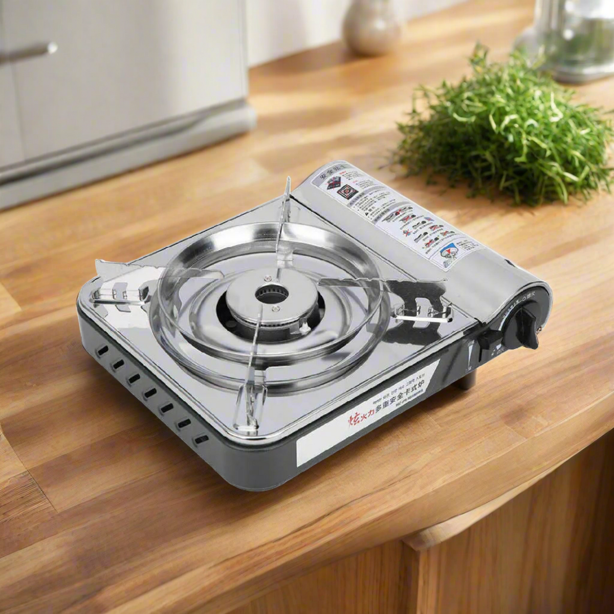 4. The gas cooker uses a piezoelectric ignition designs, the flame is individually adjustable, and comes with a sturdy stainless steel.