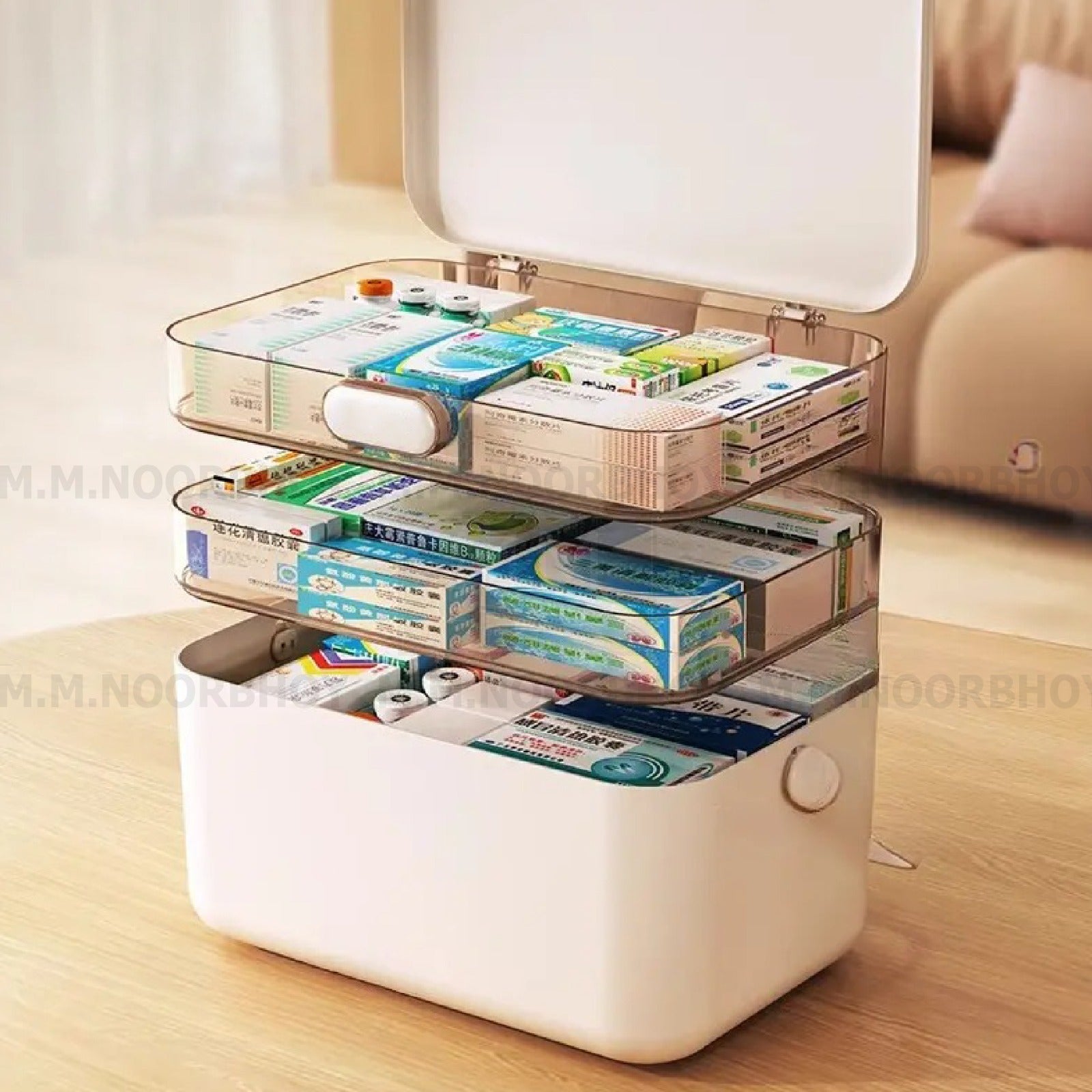 Portable Three Layer Medicine Box Yellow Color Material ABS, PET and PS - ECO/HW/YL/E24142