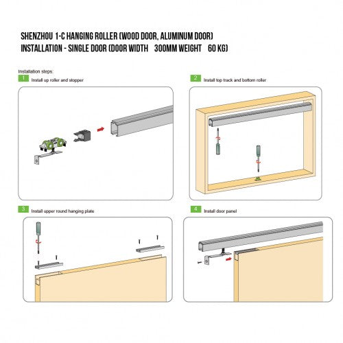 SHENZHOU 1-C HANGING ROLLER (WOOD DOOR, ALUMINUM DOOR Weight-60 kg)