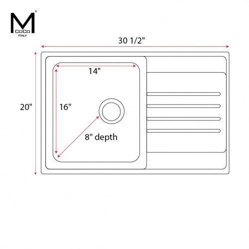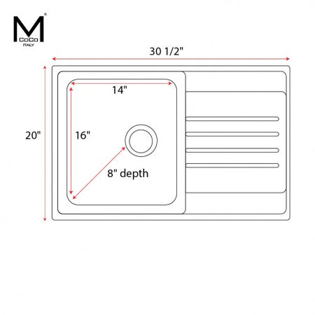 Mcoco Kitchen Sink Single Bowl Left & Right Side With Drain Board Stainless Steel - HB7901