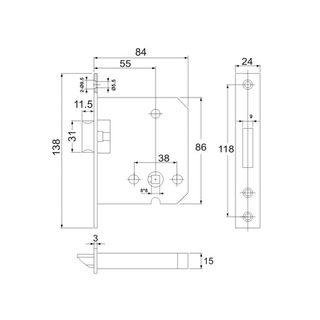 EuroArt Small Din Flat Latch Lock Body - FD0055LSSS