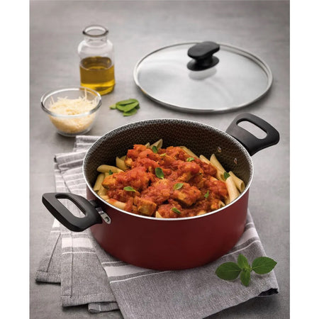 The Loreto pans are always a success in the kitchen. In addition to the practicality of uniform cooking thanks to the Starflon T1 coating, they maintain their looks for much longer. They are easy to clean, as food does not stick to the surface due to the nonstick coating. The tempered glass lids with stainless steel rims allow you to monitor cooking without lifting the lid too often. The heatproof Bakelite handles and holders and nylon knobs ensure the safe handling. They may be used on gas, electric, and glass-ceramic (electric resistor) cookers and are safe for dishwasher use.