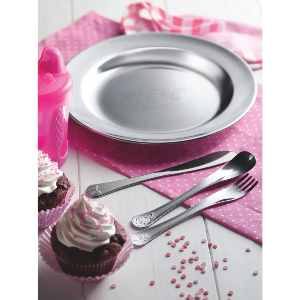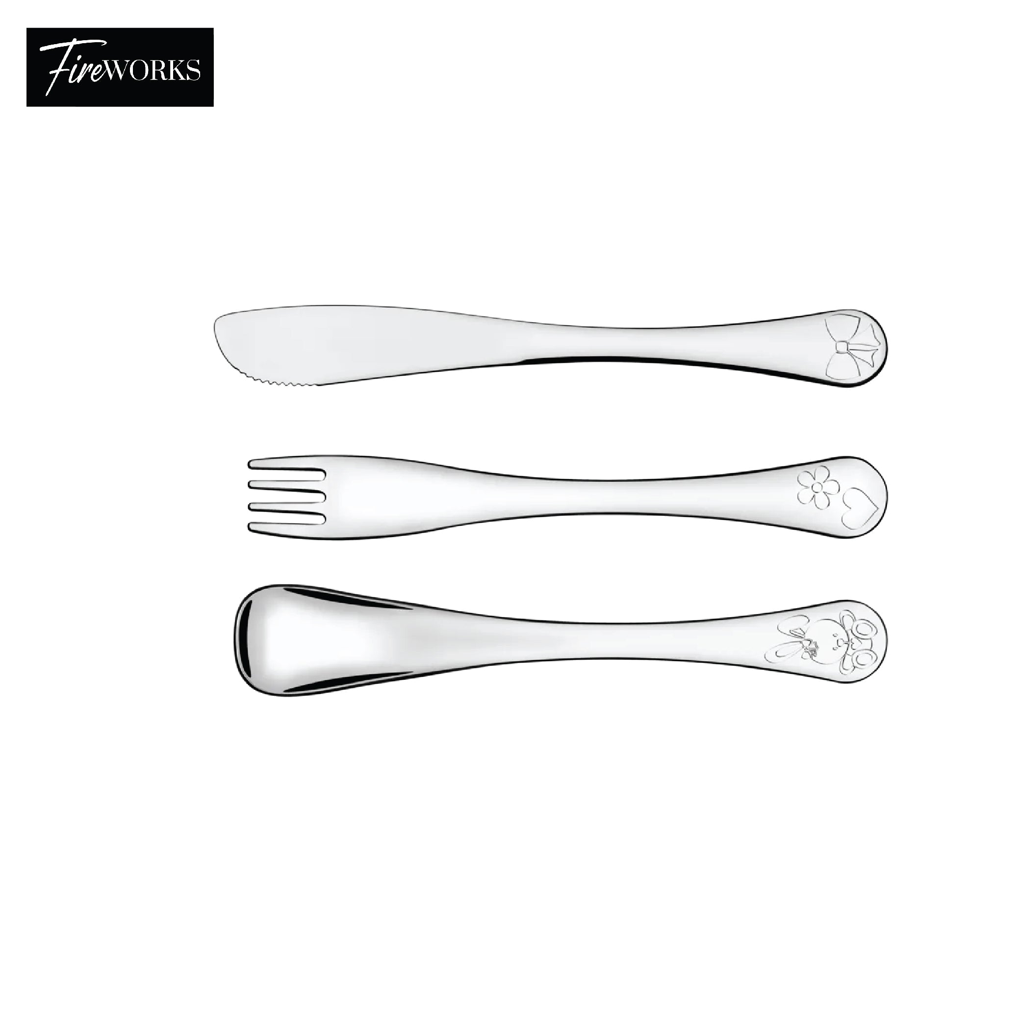 | Recommendations for Use | Recommended for children ages 36 months or older. Use only soap or detergent and a soft sponge to wash. Other products such as steel wool can scratch or damage the cutlery shine. Rinse each piece well in order to completely remove the residue of the cleaning products that are abrasive and can damage stainless steel. Use warm water whenever possible as it renews the cutlery shine. After washing, dry the tableware immediately otherwise the chemical substances in water (chlorine) can stain the tableware. Do not allow the tableware to rub against each other during washing and storage in order to prevent scratches Avoid contact with hot surfaces. They can cause the colors to fade. Do not store items in a humid place as it can cause stains. When using a dishwasher, we recommend removing the cutlery as soon as the rinse cycle is finished and dry them by hand. |