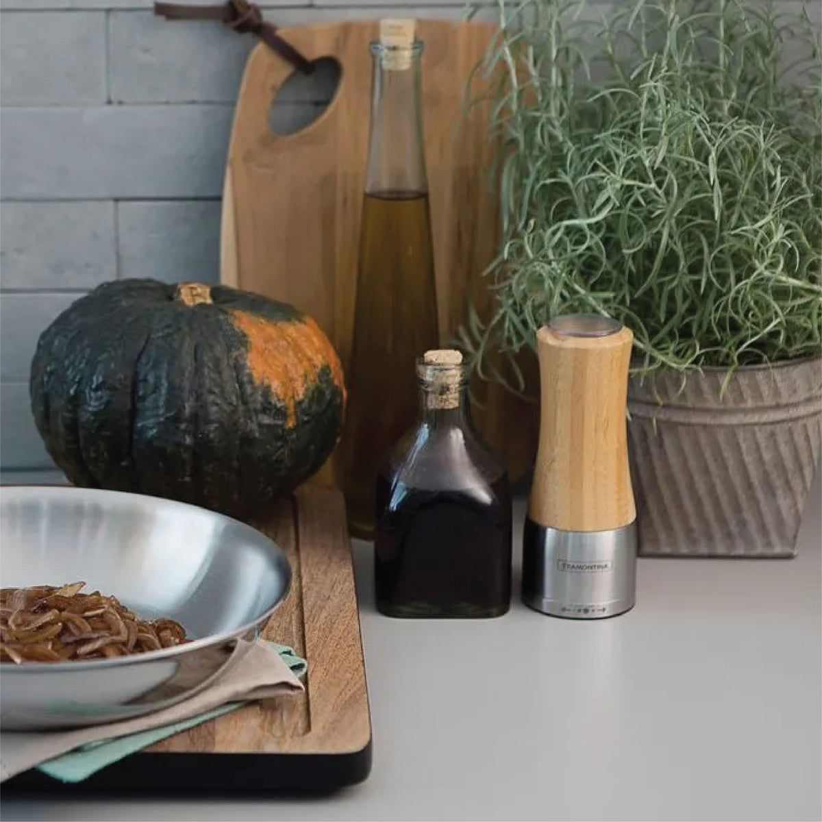 There’s nothing better than freshly ground condiments to add that special touch to our dishes. Imagine, then, using products from the Realce line at home, including Tramontina’s stainless steel and bamboo salt and pepper grinder with ceramic mill! With capacity for 95 g of salt and 40 g of pepper, you can adjust the grind size so you can add that special touch to your dishes like a true chef. Made of bamboo and stainless steel with highly resistant grinders that last longer and a subtle, convenient and elegant design that will always make your kitchen ready for moments of joy and sharing.