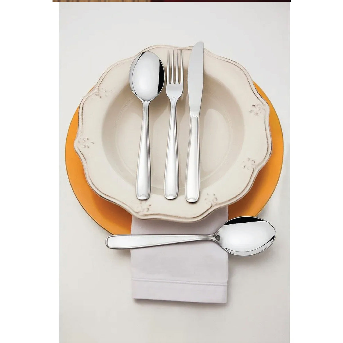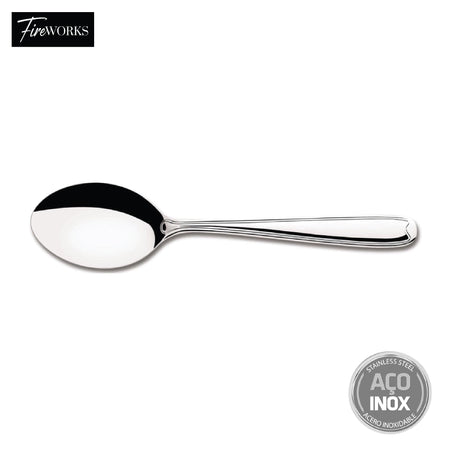 Spoon with symmetrical bowl and carefully rounded edges, providing greater comfort in use. Entirely made of stainless steel, it maintains its original characteristics, preserving the beauty, hygiene, and durability of the material. Gloss finish, with details on the handle. Suitable for daily use blends with any environment.
