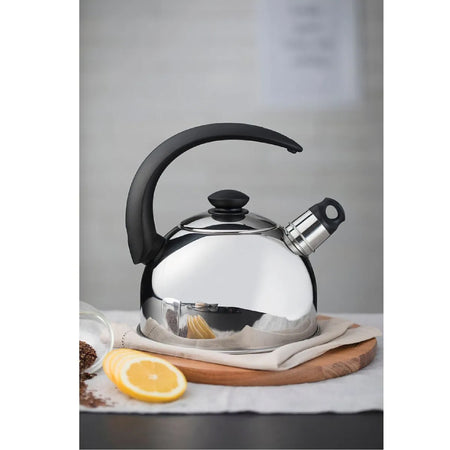 Brew a hot pot of tea quickly and with convenience with Tramontina's 3L stainless steel whistling kettle. The highly durable material ensures this kettle will last, while a mirror finish adds classic elegance to your kitchen. Boil water efficiently and keep track of progress with a loud whistle that alerts you when the water is boiling. The design is suitable for use on all types of cooktops.